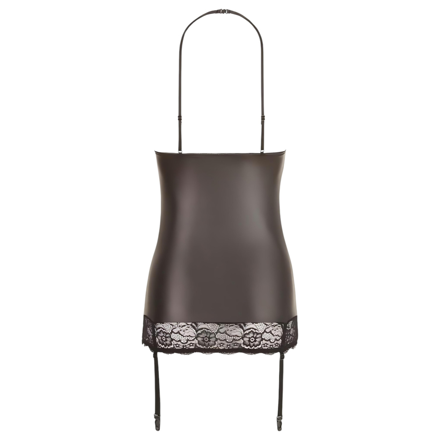 Pune lenjeria astfel încât cupele deschise și inelul cu strasuri să se așeze frumos la decolteu. Ajustează bretelele pentru confort, apoi combină cu dresuri și pantofi cu toc înalt pentru un aspect impresionant.