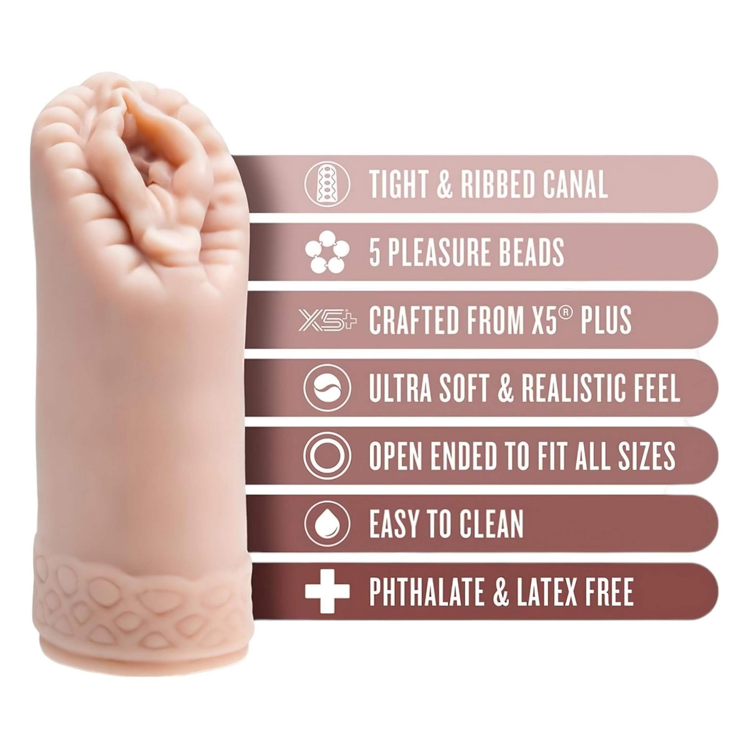 Lubrifică masturbatorul cu un lubrifiant pe bază de apă, apoi bucură-te de interiorul stimulativ și strâns. Controlează intensitatea experienței prin presiune. Imaginile AI incluse ajută la crearea atmosferei.