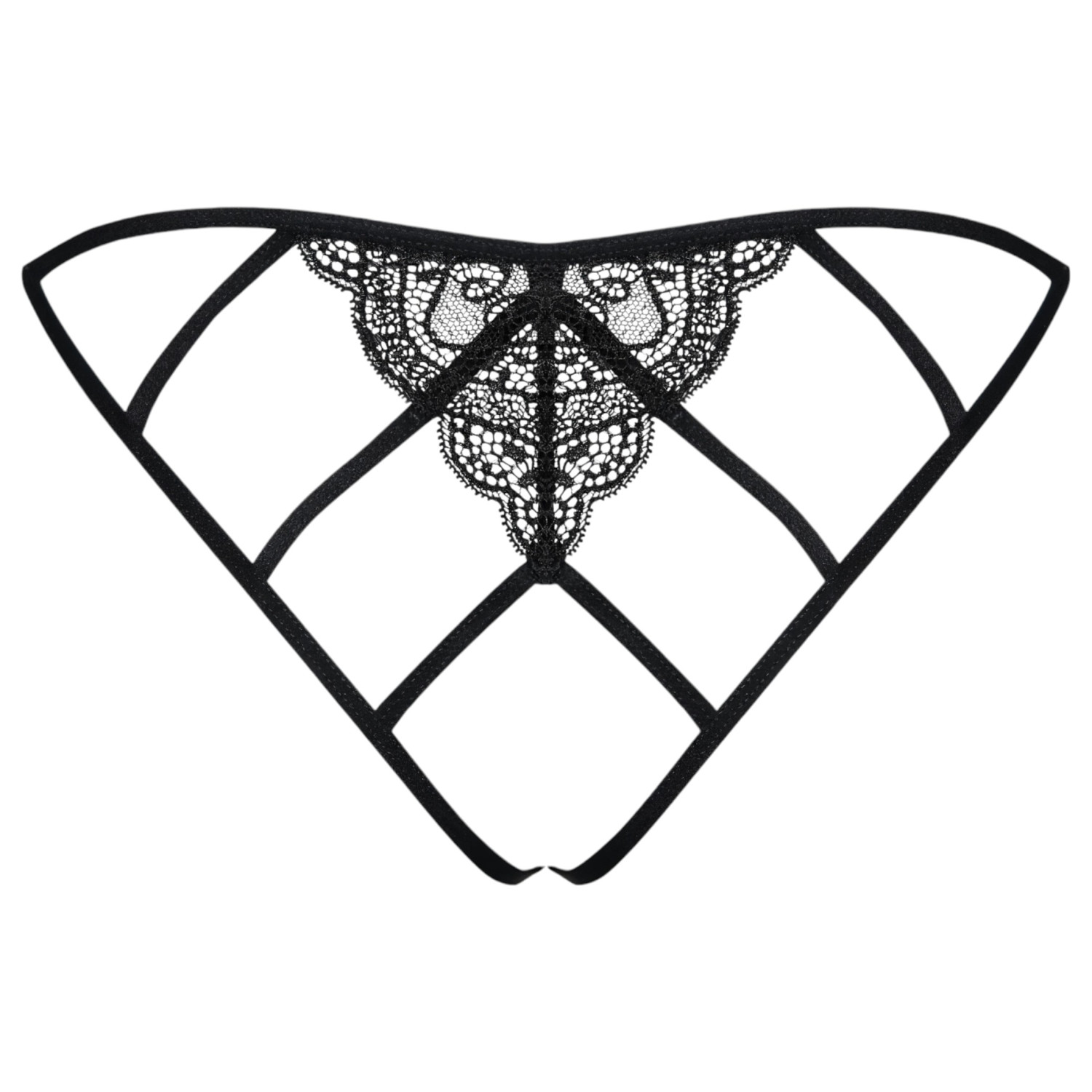 Obsessive Miamor - chiloți negri dantelă și plasă, deschiși - L/XL