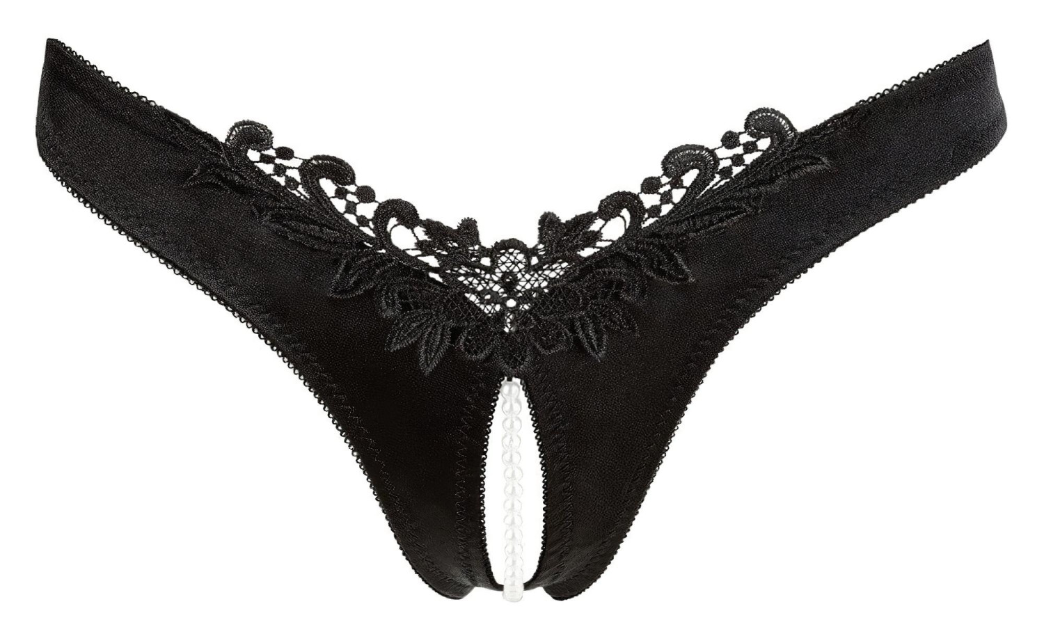 Chiloții deschiși decorați cu perle combină seducția senzuală cu o experiență de stimulare aparte.