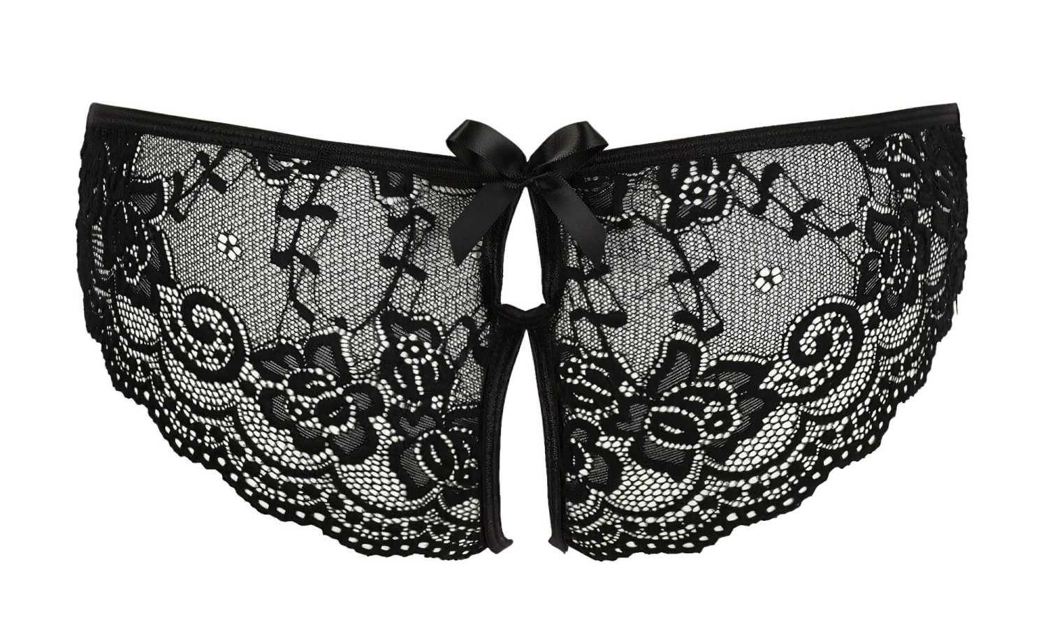 Cottelli - chiloți deschiși cu fundă din dantelă (negru) - XL