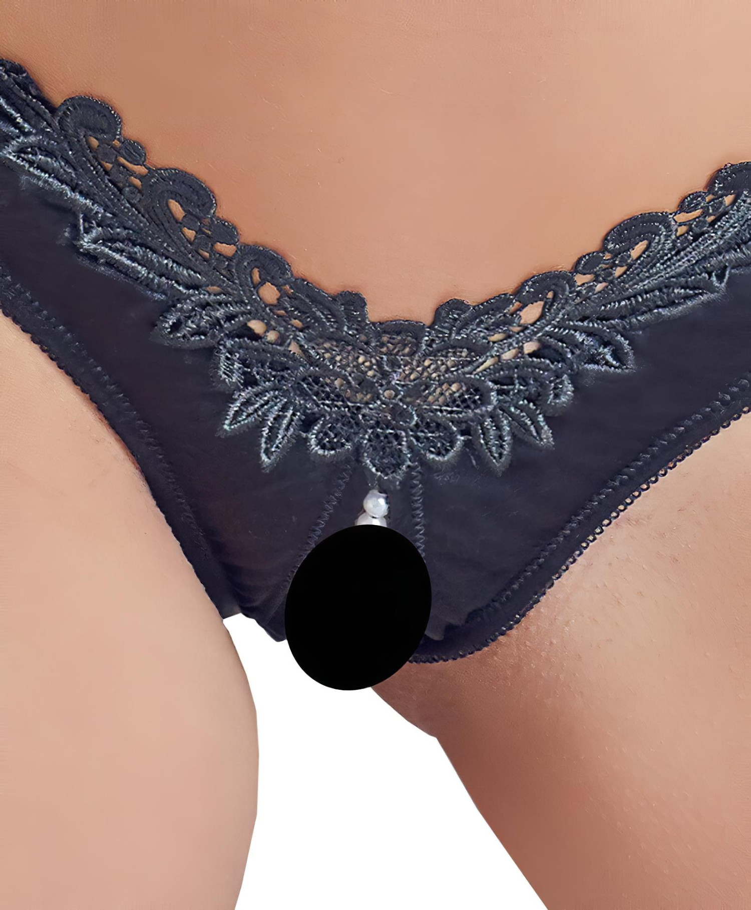 Chiloții deschiși decorați cu perle combină seducția senzuală cu o experiență de stimulare aparte.