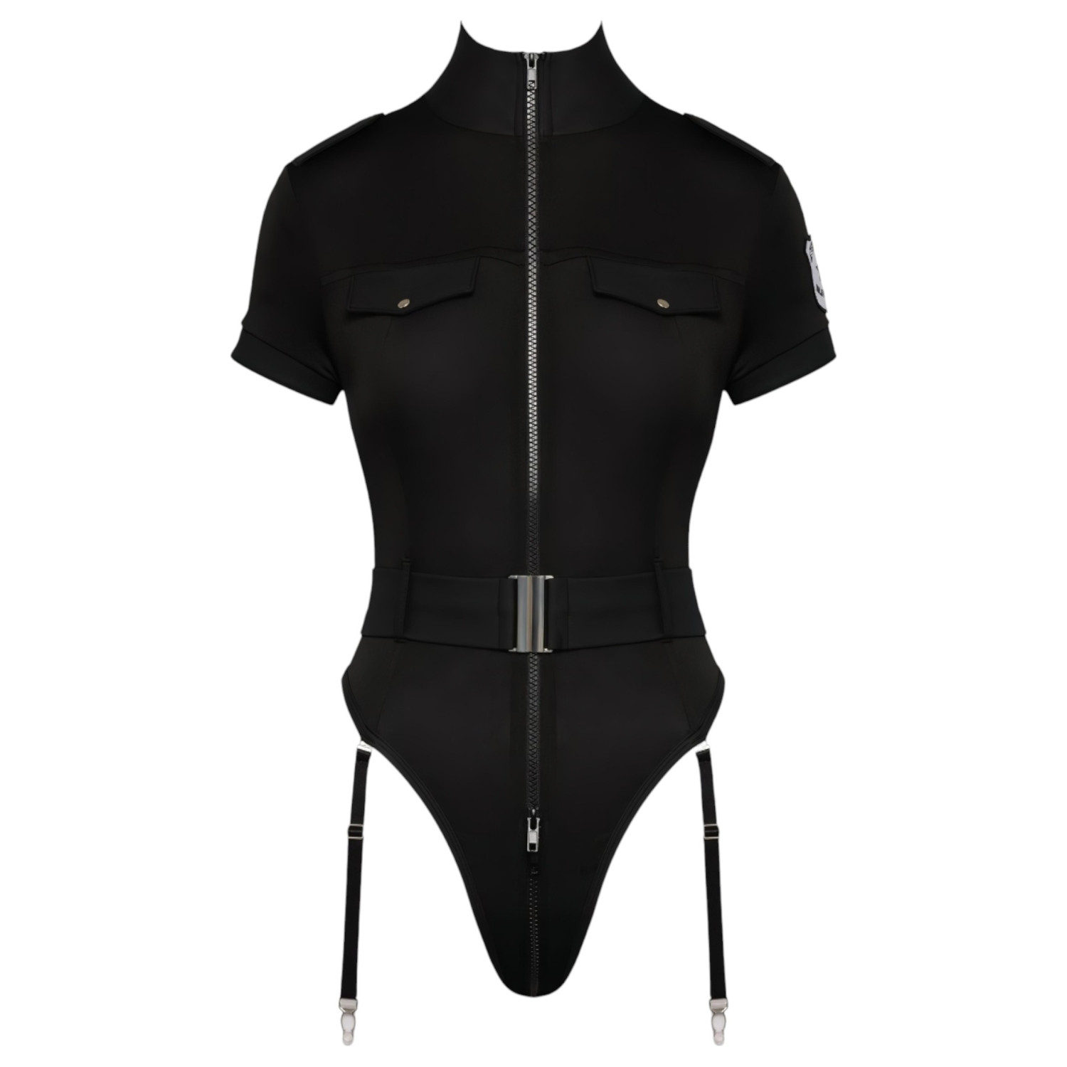 Body de polițistă cu croială sexy - perfect dacă vrei să fii tu cea care dictează regulile în jocurile voastre de rol.