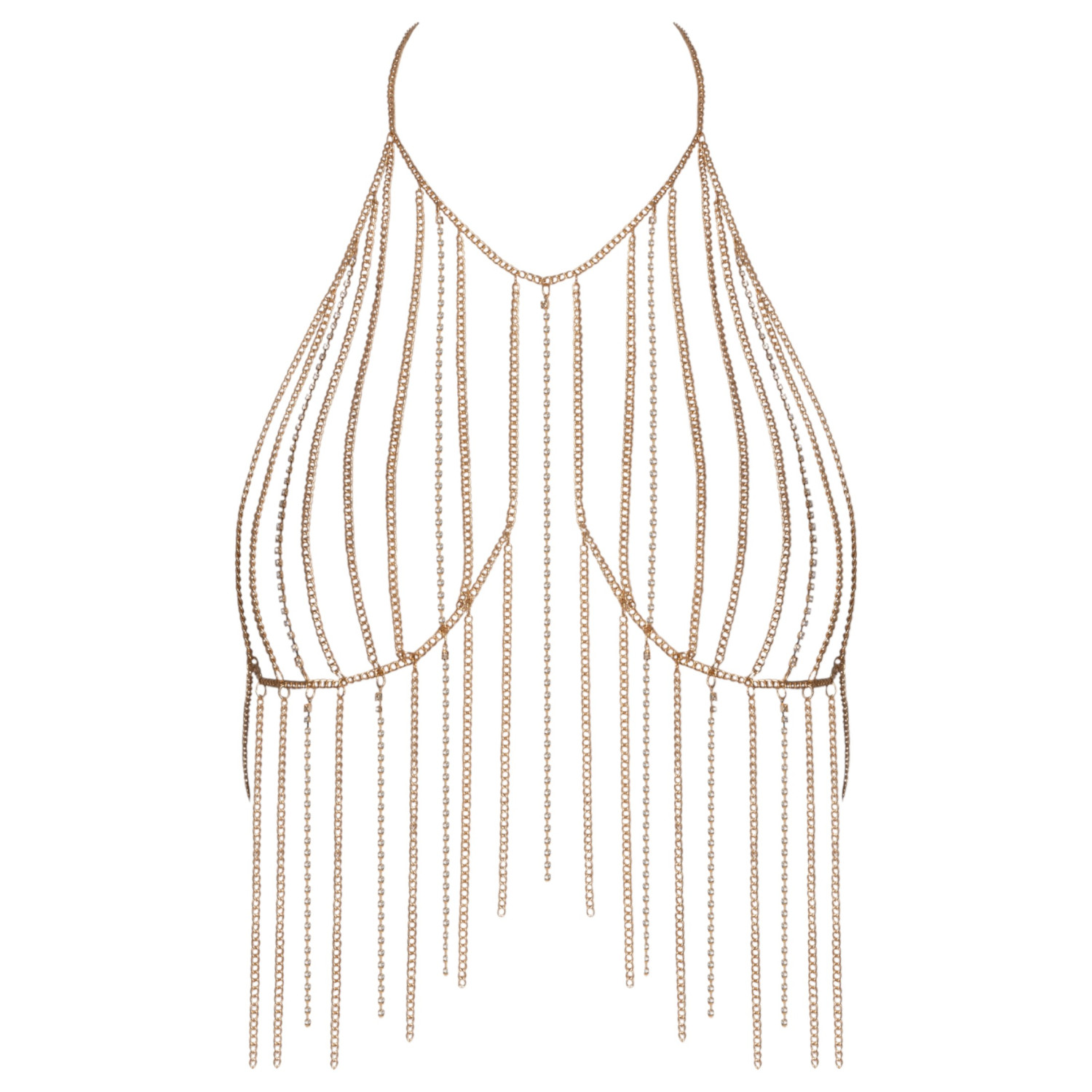 Cottelli - lănțișor de corp ajustabil (auriu) îți acoperă partea superioară a corpului ca un adevărat bijuterie și garantat va atrage toate privirile - fie pe pielea goală, fie peste haine!