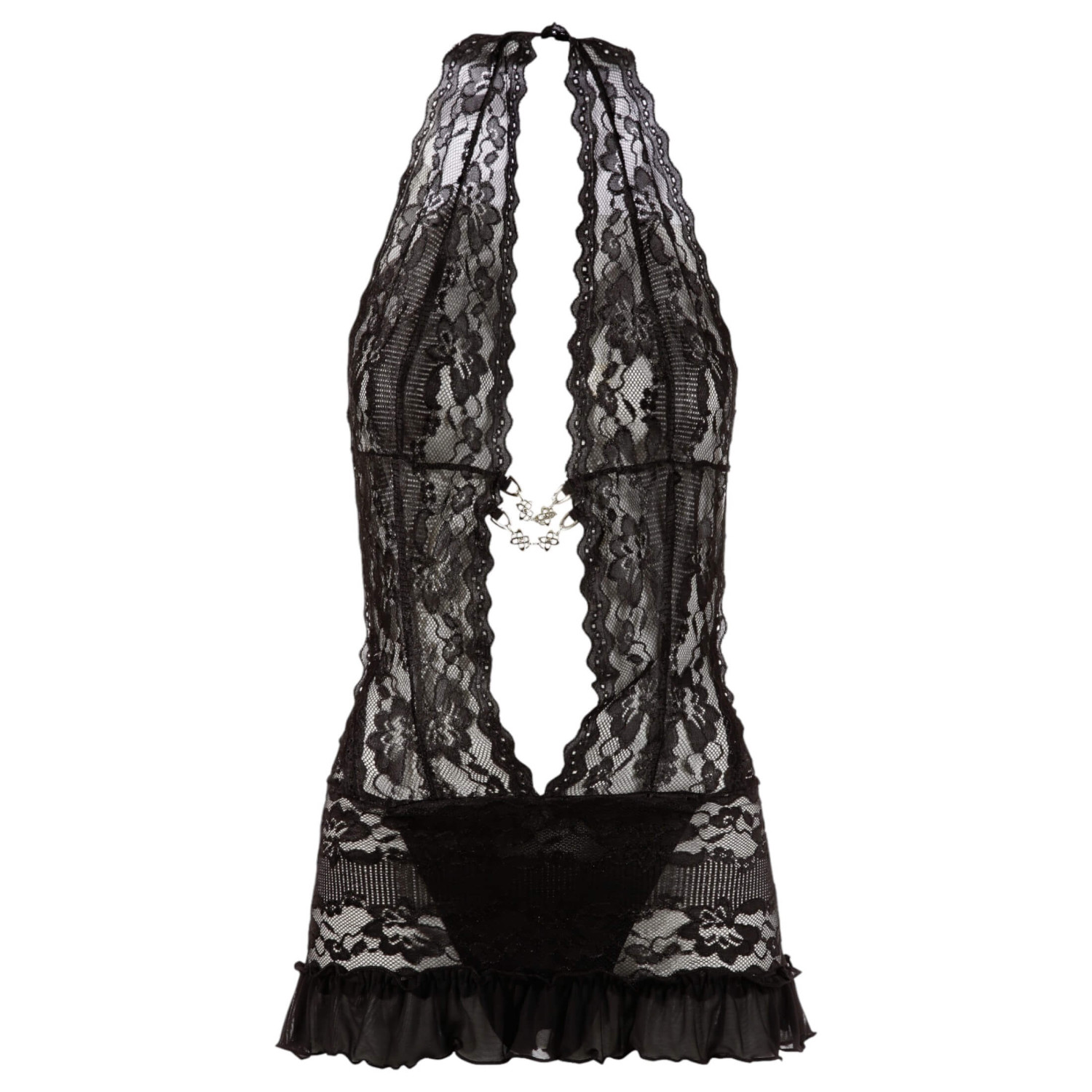 • 1 rochie din dantelă cu model floral, cu tanga integrată.