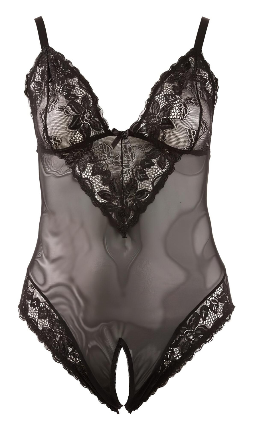 Cottelli Plus Size - body negru din dantelă - XXXL
