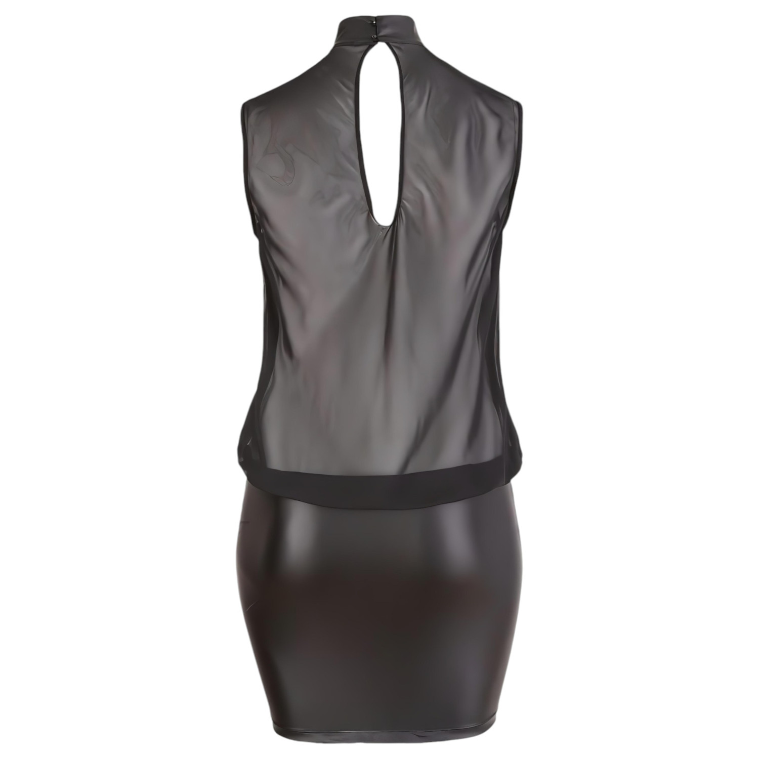 • 1 rochie mini neagră cu guler înalt și partea de sus transparentă