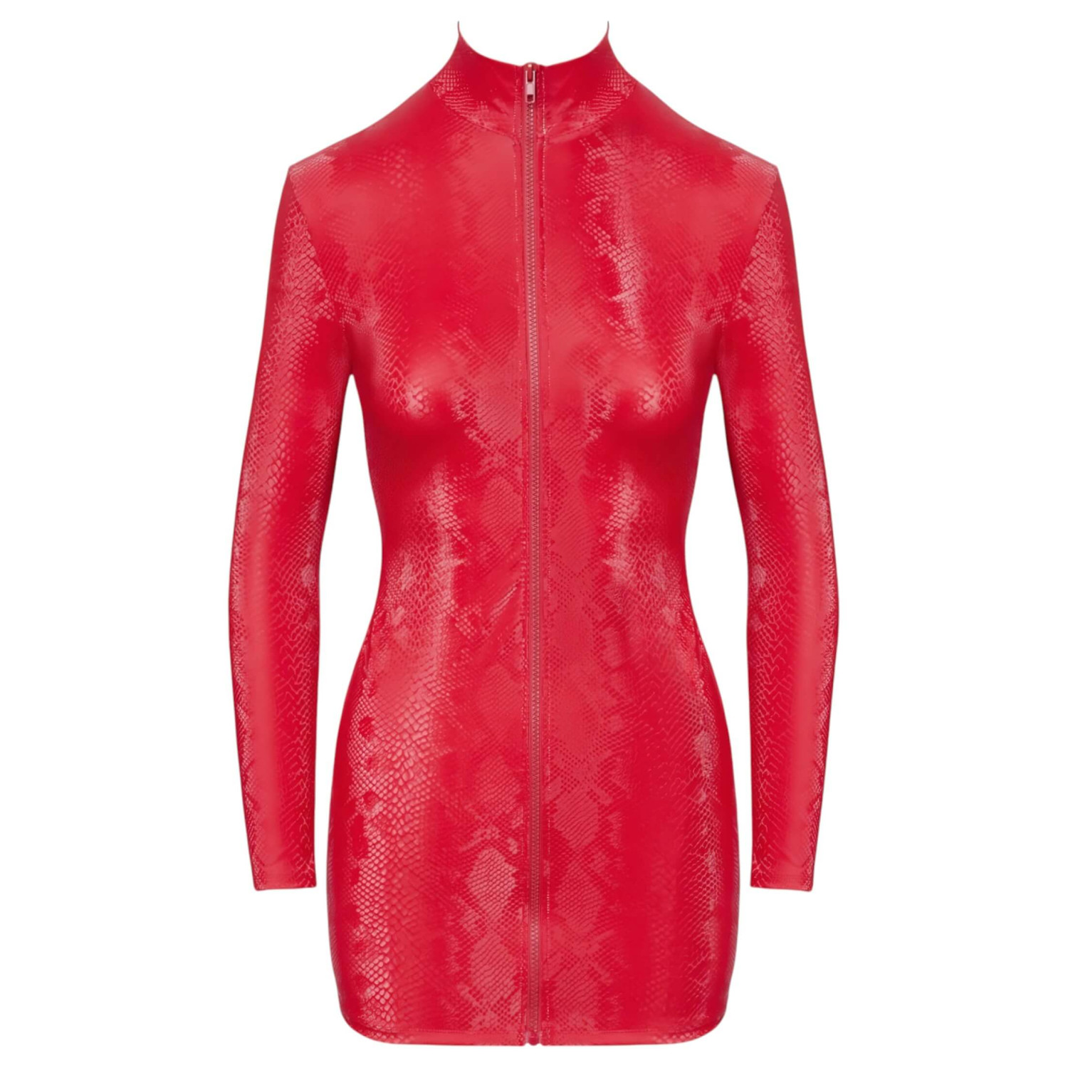 Rochia scurtă și super strâmtă de la Cottelli PARTY, cu un look modern de piele de șarpe roșu aprins.