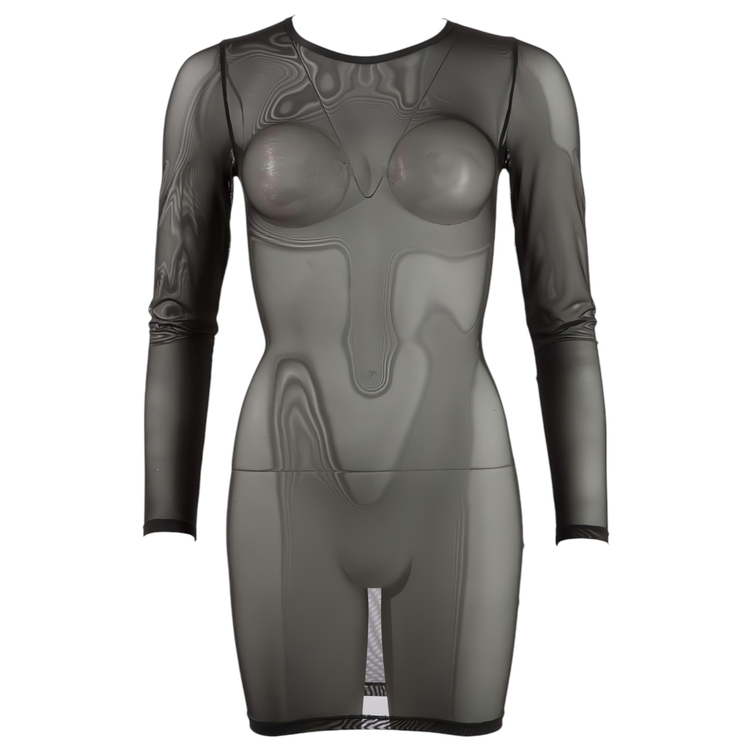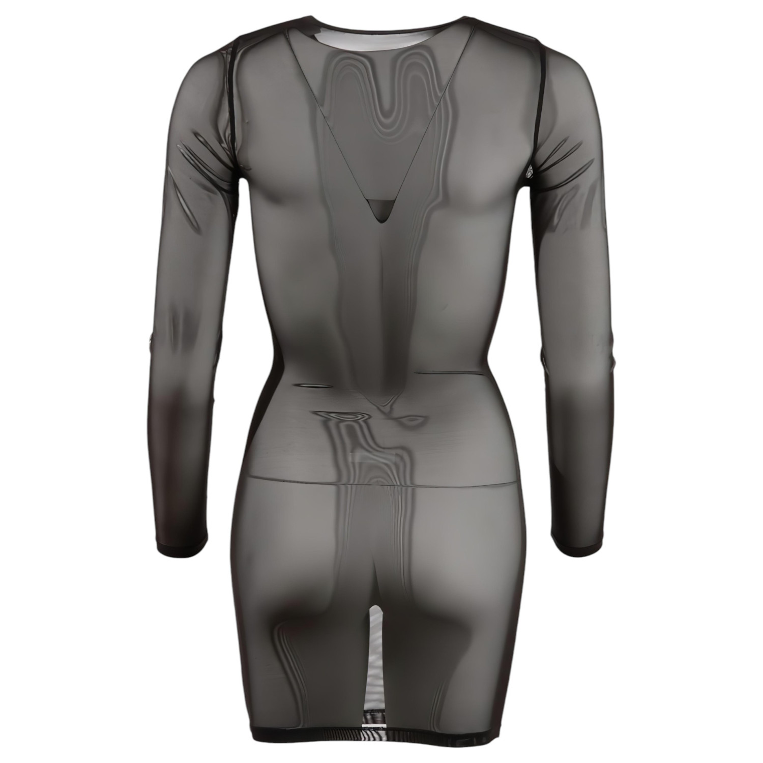 Mini-rochie complet transparentă, care se mulează perfect pe linia corpului.