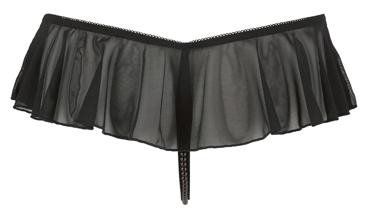Cottelli - chiloți tanga negri deschiși, cu mărgele și volănașe - XL