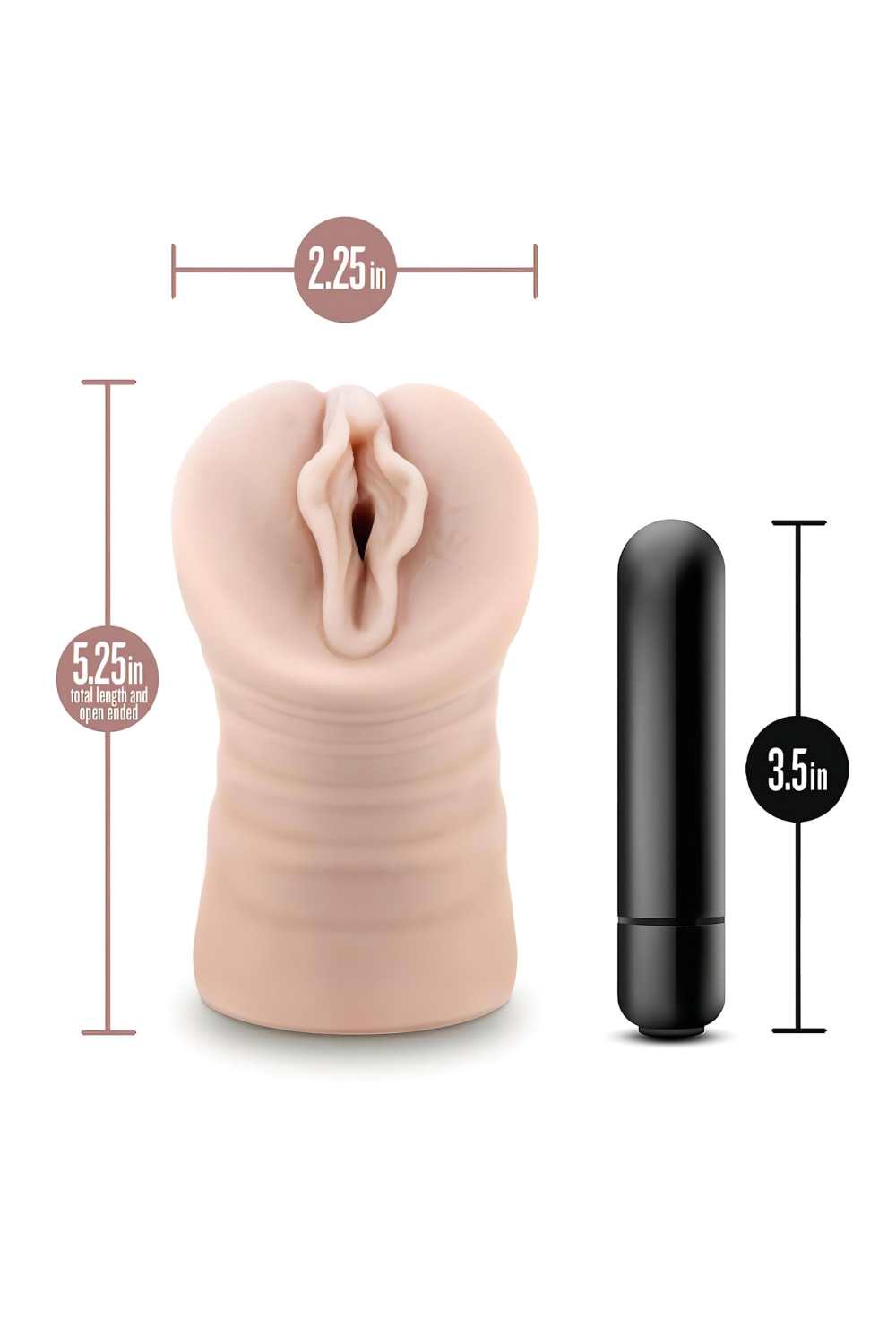 Lubrifiază corect masturbatorul cu un lubrifiant pe bază de apă și bucură-te de plăcerea oferită de canalul de plăcere strâns și de vibrații. Imaginile AI te ajută să intensifici atmosfera. Controlează intensitatea prin strângere.