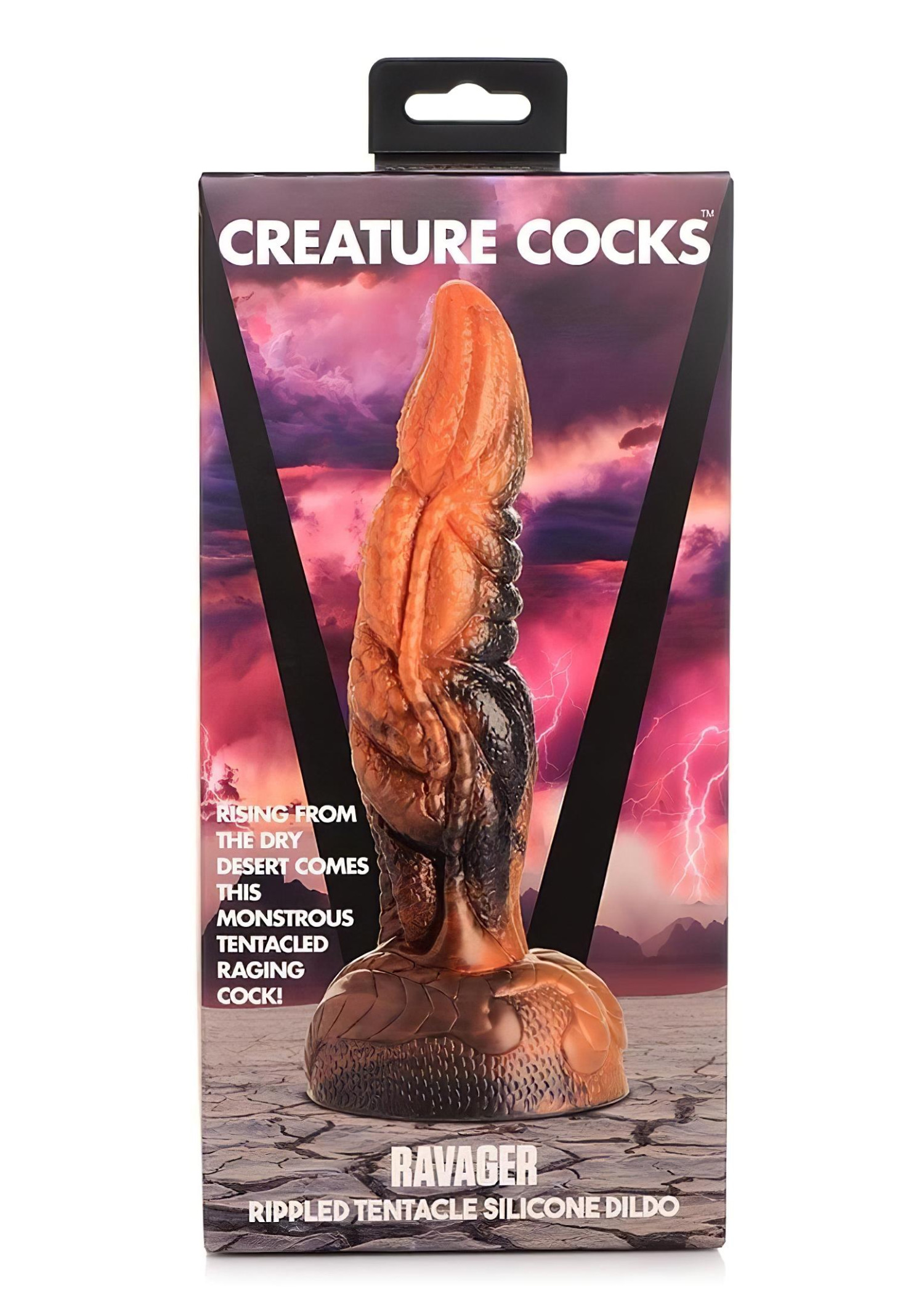 Fiare bestia devastatoare! Acesta este dildo-ul Creature Cocks Ravager, cu șanțuri și striații impresionante.