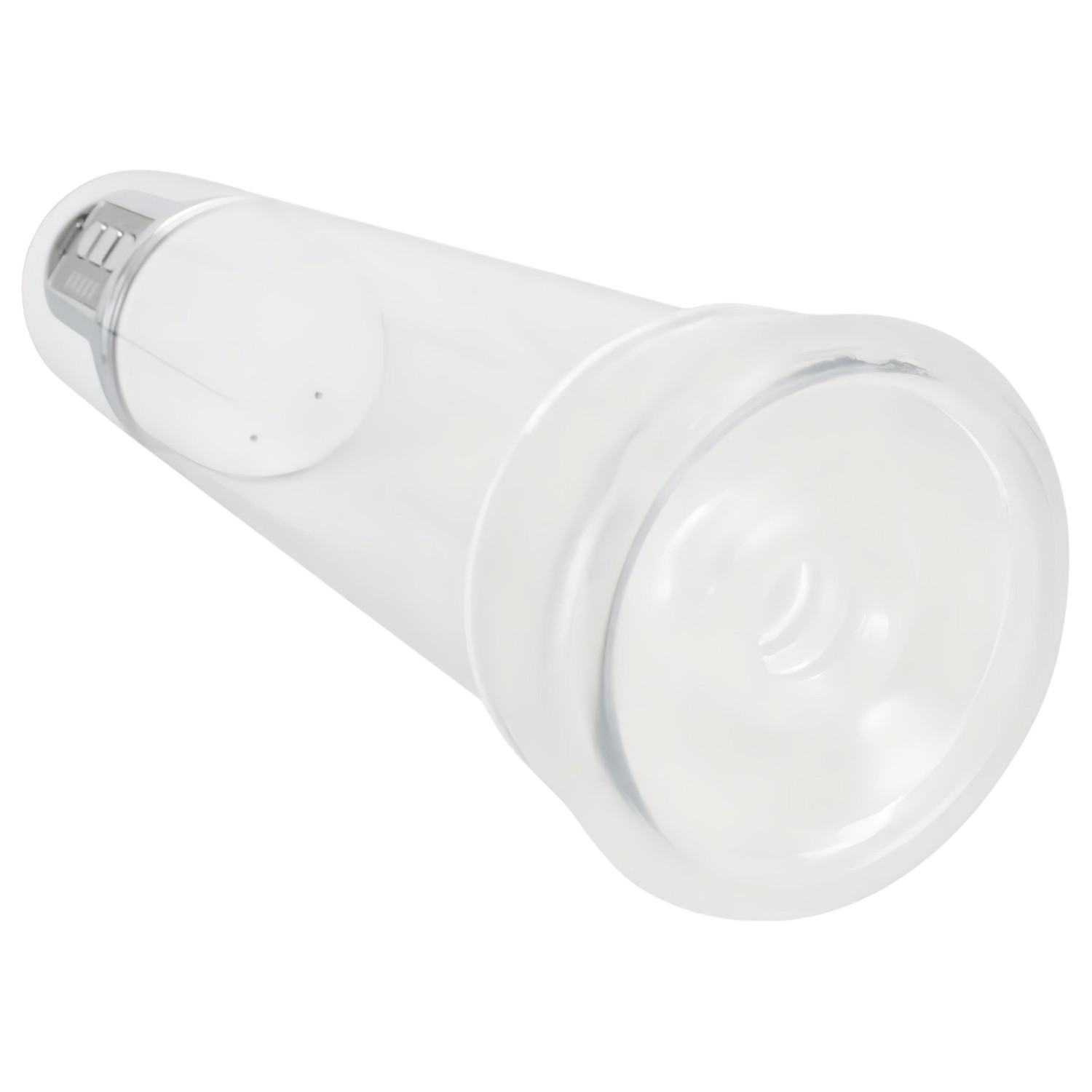 Lubrifiază penisul, introdu-l în manșetă, apoi apasă butonul M+ pentru a porni vacuumul. Puterea de aspirație are 4 niveluri: crește cu butonul M+, scade cu butonul M-. Pentru oprirea aspirației, ține apăsat butonul M-. Pentru eliminarea totală a vacuumului, apasă butonul de sus.