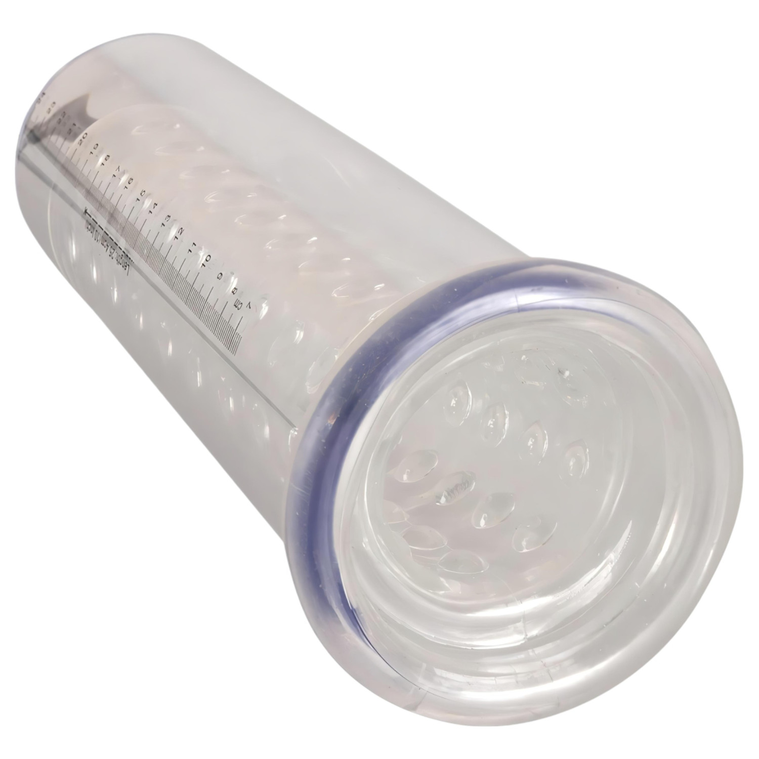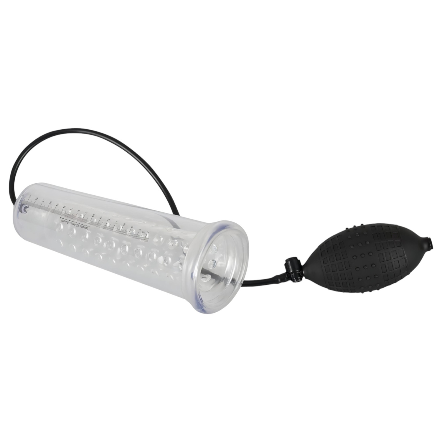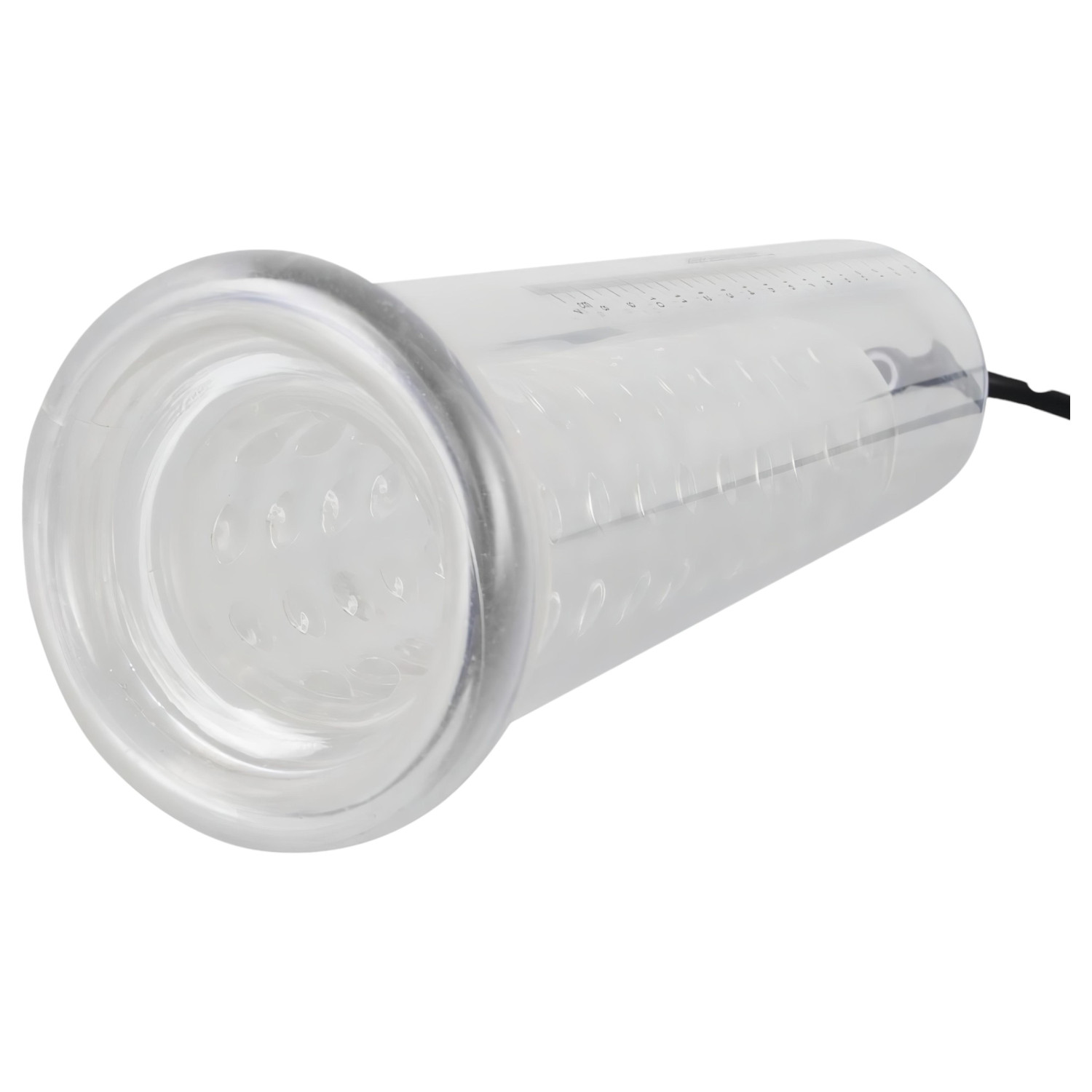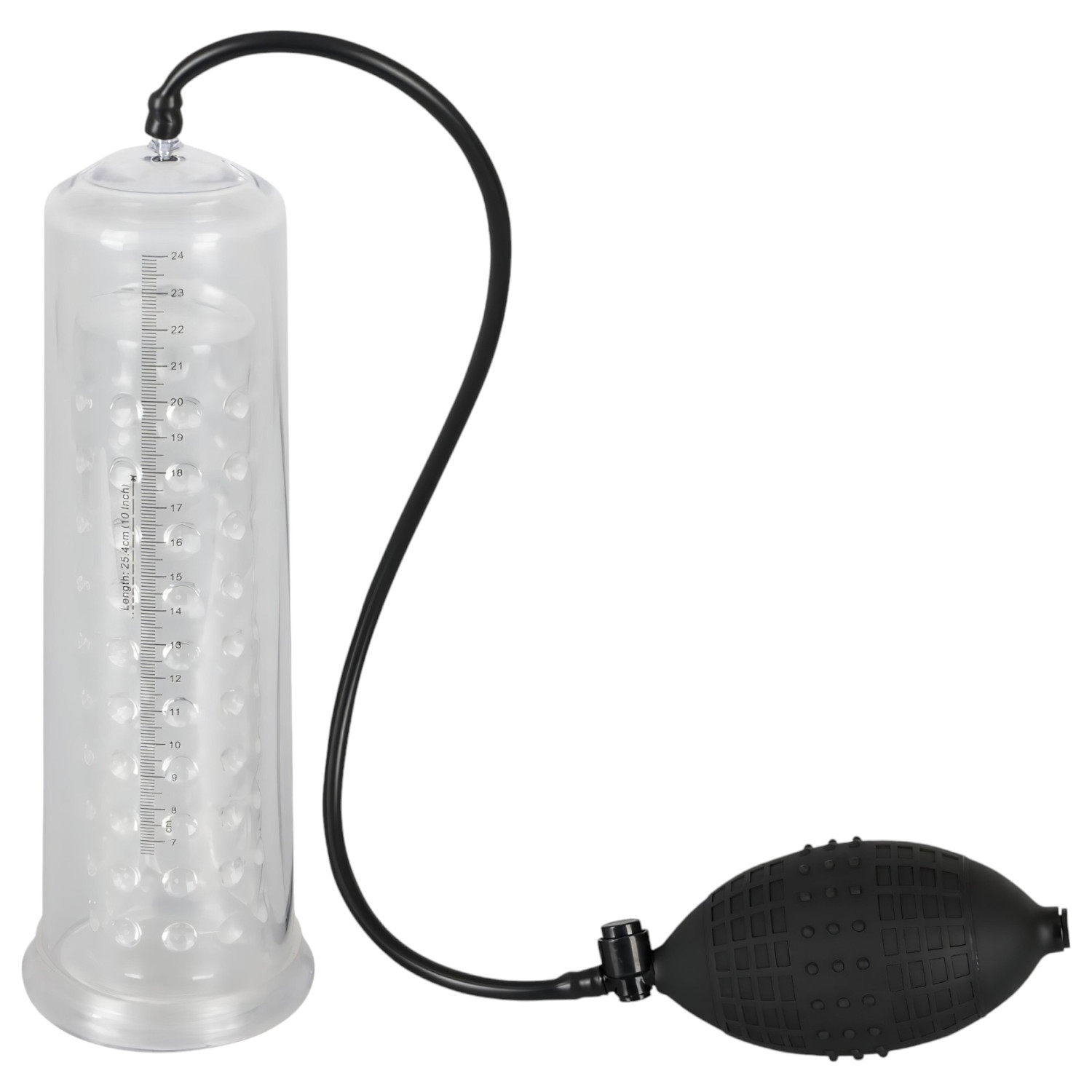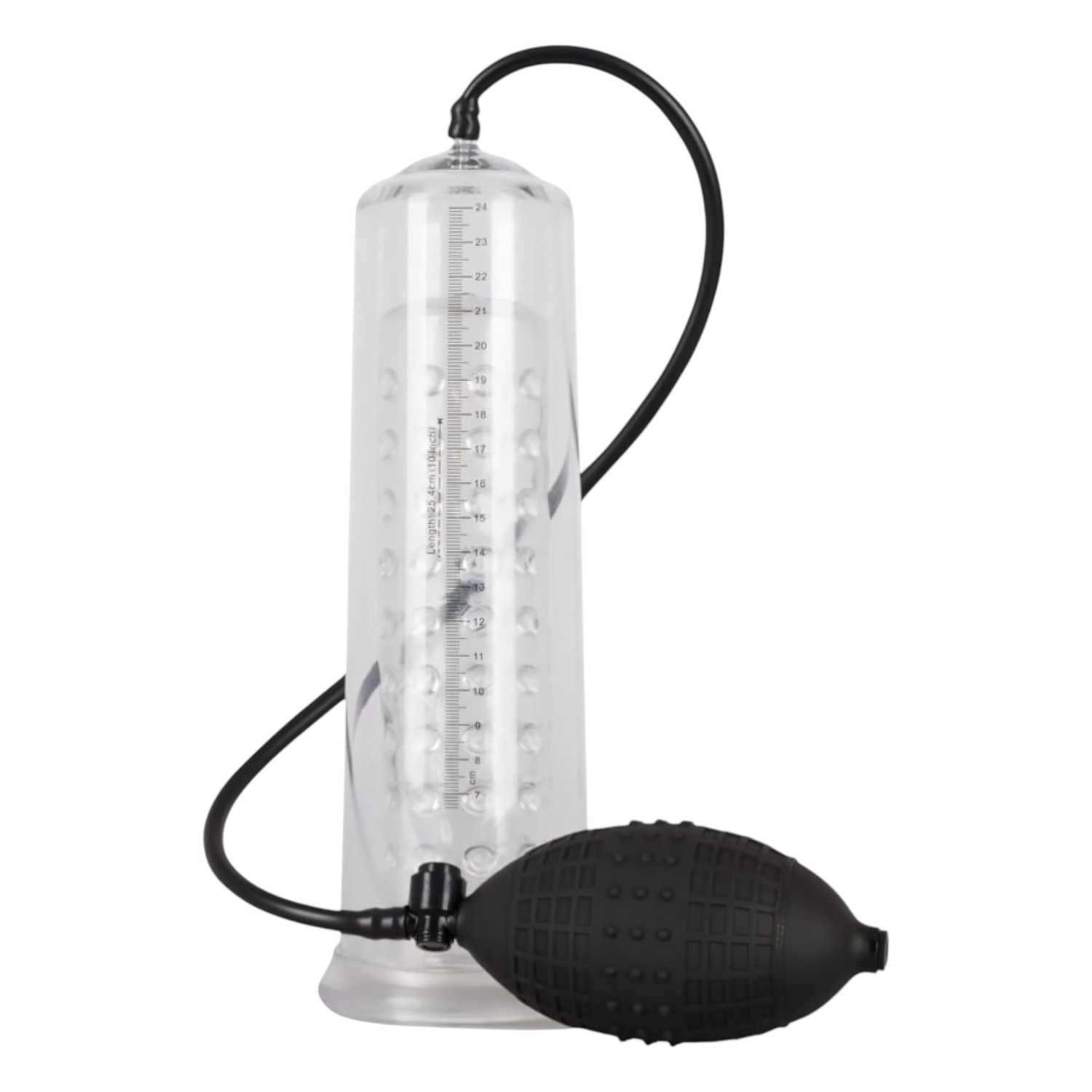 Introdu penisul prin manșeta din silicon cu buline stimulatoare în cilindrul de vacuum și începe să pompezi folosind mânerul cu balon. Vacuumul creat ajută sângele să circule mai bine, ceea ce duce la erecții mai tari și chiar poate contribui la creșterea în dimensiuni. Supraveghează progresul pe scala de pe lateral. Pentru a elibera presiunea, folosește supapa de siguranță.