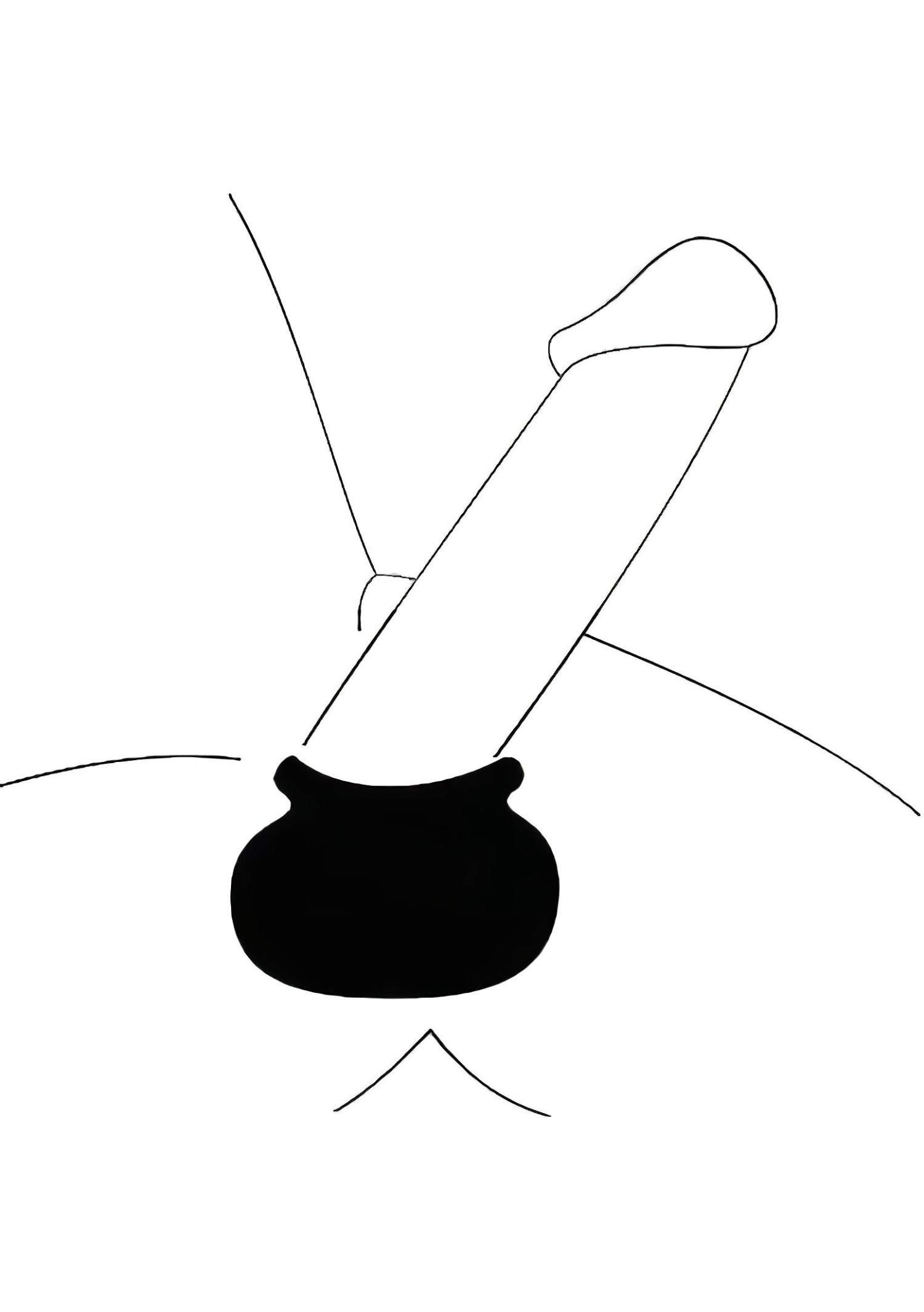 Pentru a-l pune, întinde deschiderea cu două degete sau de margine, apoi trage-l ușor peste tot scrotul până când se fixează bine. Forma specială oferă o presiune plăcută, dar delicată, trăgând testiculele în jos pentru o senzație intensă.