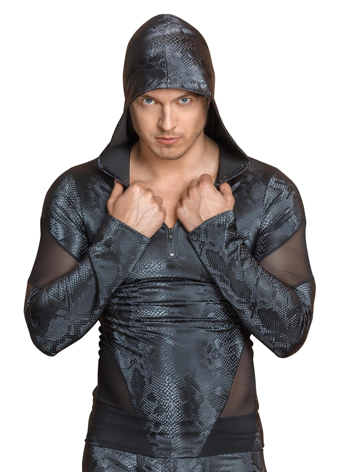 Hanorac super sexy cu glugă, din material cu imprimeu de piele de șarpe - inserții de plasă transparentă pentru un look provocator!