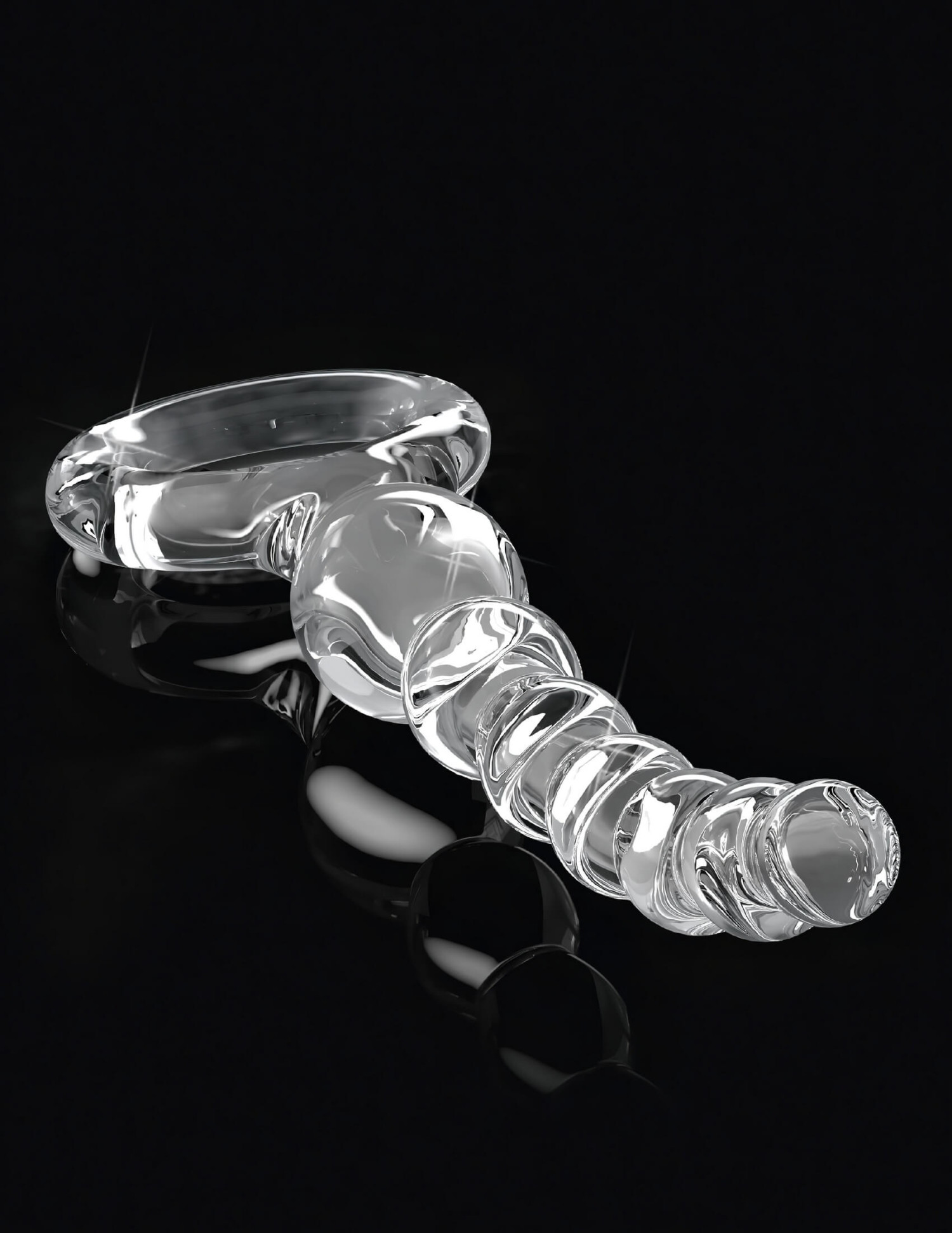 Un dildo elegant, realizat manual din sticlă, cu suprafață în formă de bile - o piesă de design care încântă și la utilizare.