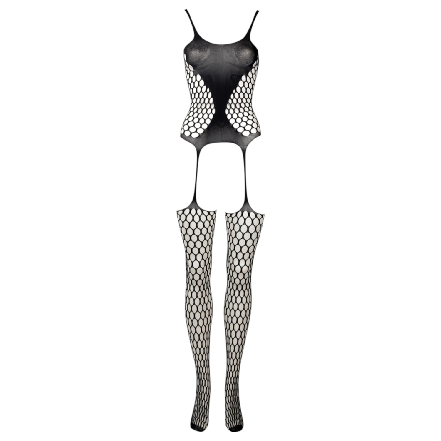 Bodystocking cu aspect de plasă largă și portjartier - alegerea perfectă dacă vrei un look îndrăzneț și care atrage toate privirile.