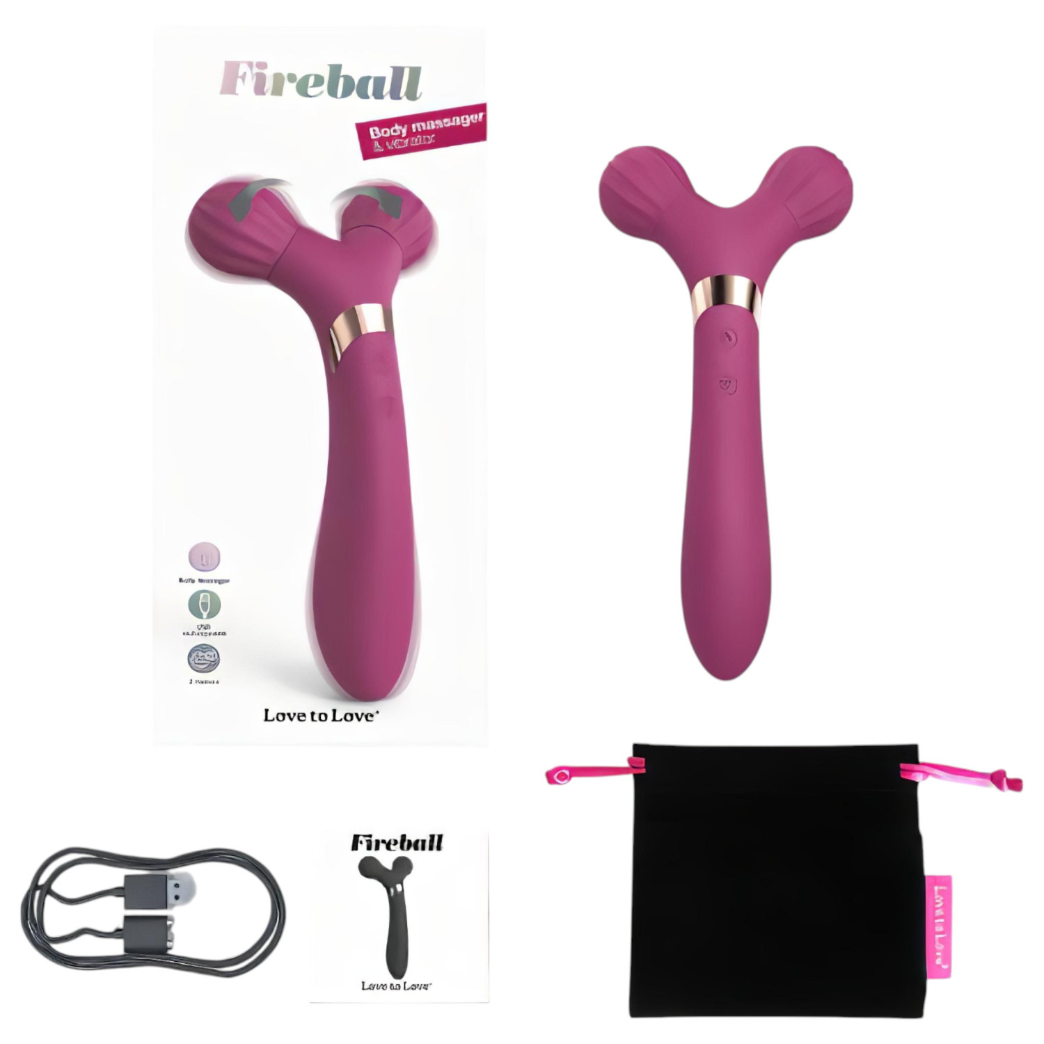 Uită-te la prezentarea video a vibratorului de masaj Love to Love Fireball - cu baterie, 2în1 (bordo)!
