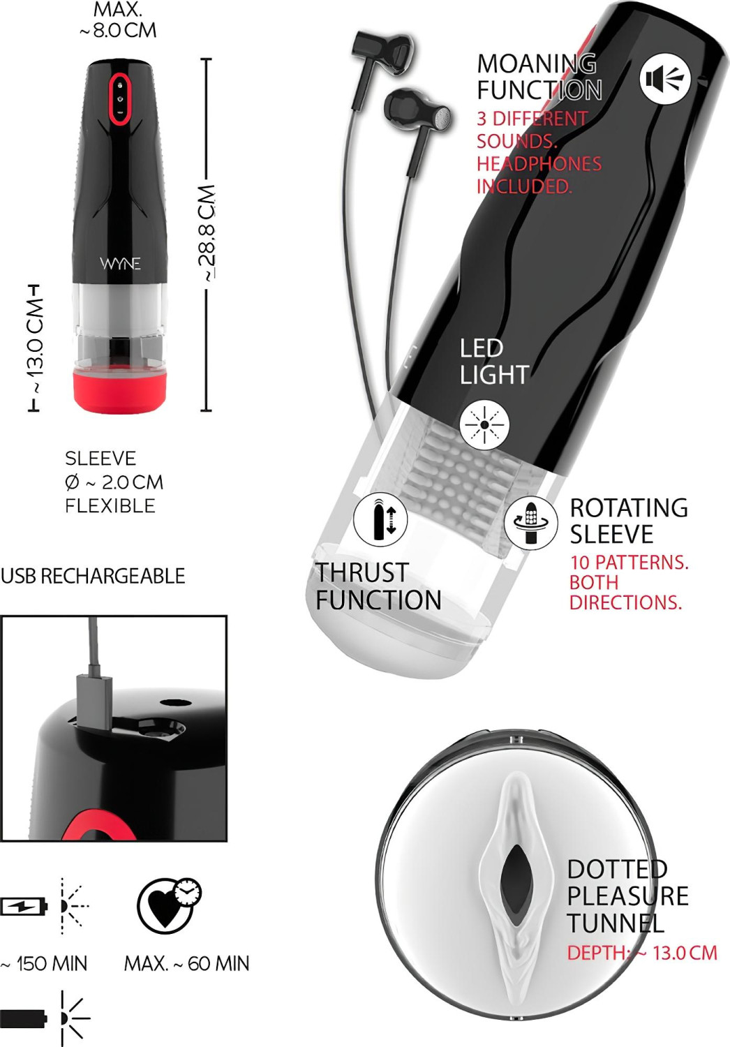 Recenzii WYNE 05 - masturbator rotativ cu încărcare (negru-alb)