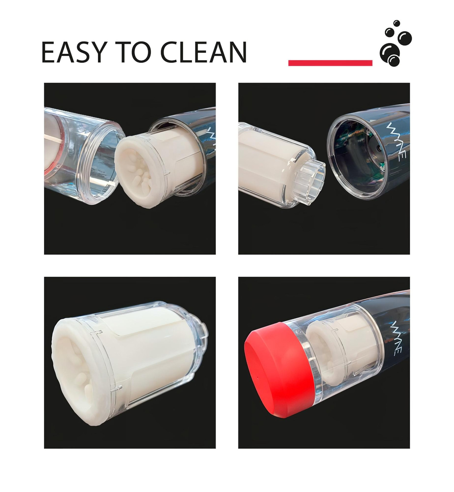 • Partea de jos a masturbatorului este transparentă - vezi exact ce face mecanismul rotativ cu tine