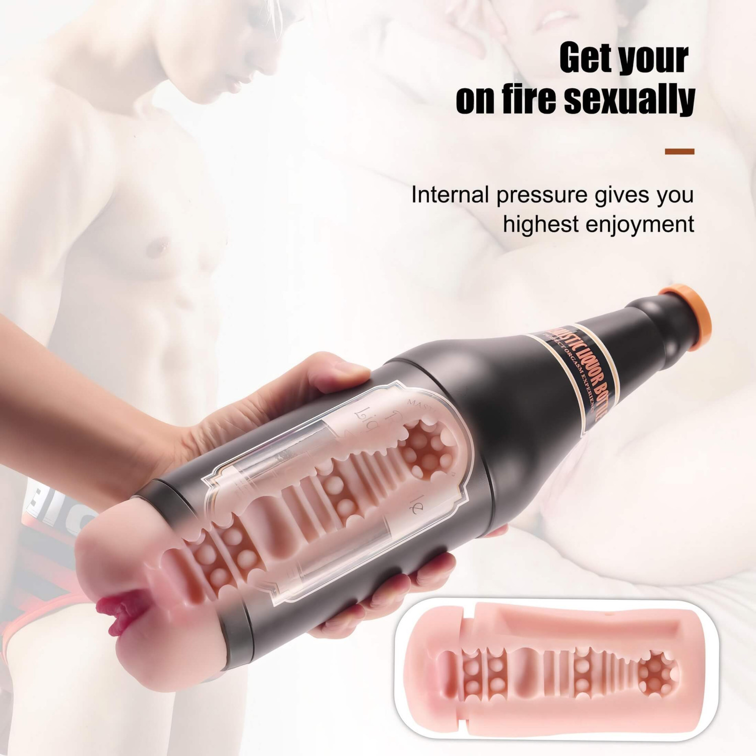 O vagină artificială extrem de moale și catifelată, ascunsă într-o sticlă discretă cu formă de sticlă de bere.