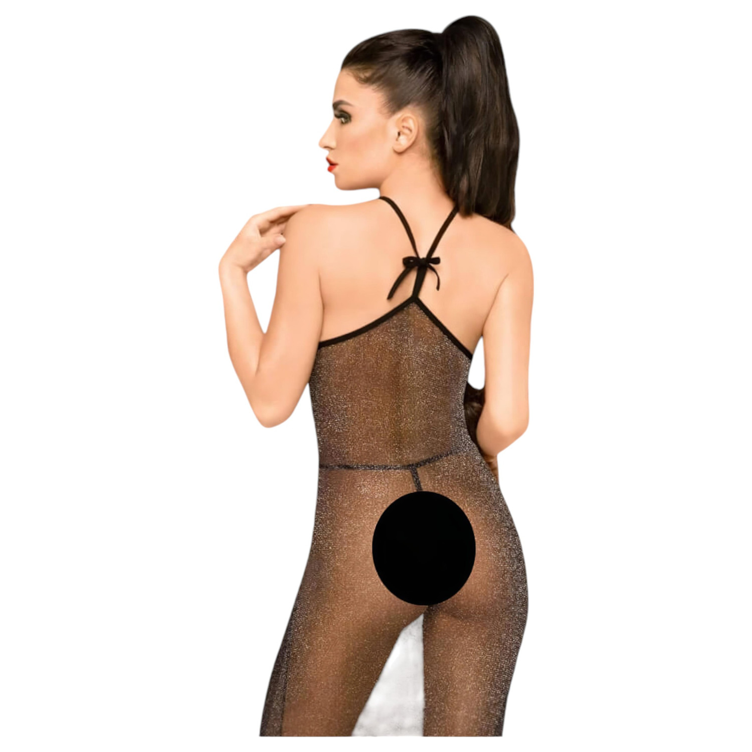 Tanga trasparentă asortată completează setul și poate fi purtată chiar și individual în combinații mai îndrăznețe.