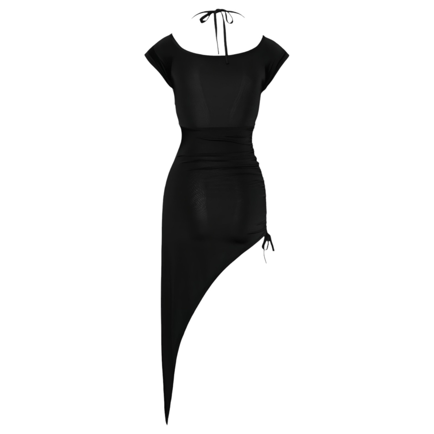 • Rochie de party cu decupaj sexy și croială asimetrică