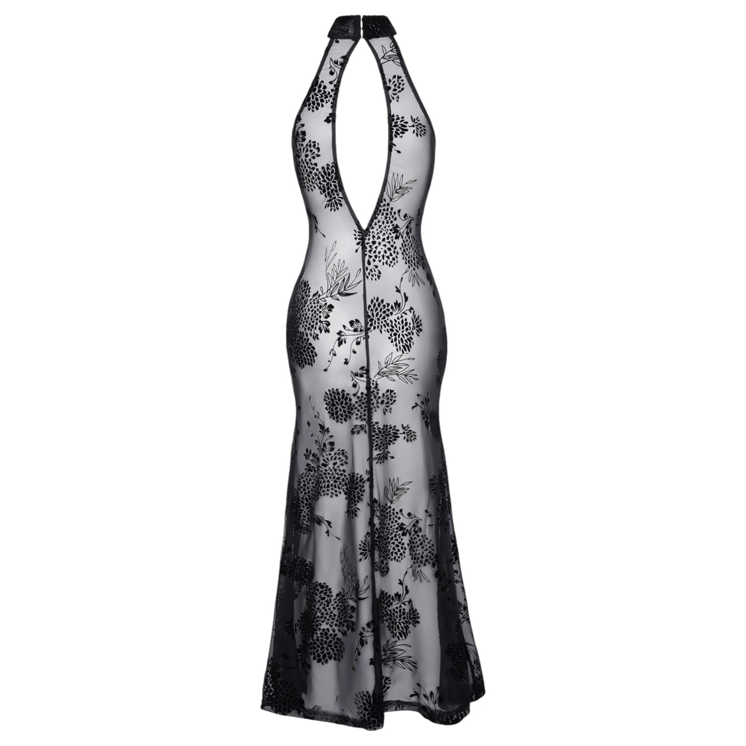 Noir - rochie lungă, transparentă, florală (negru) - XL
