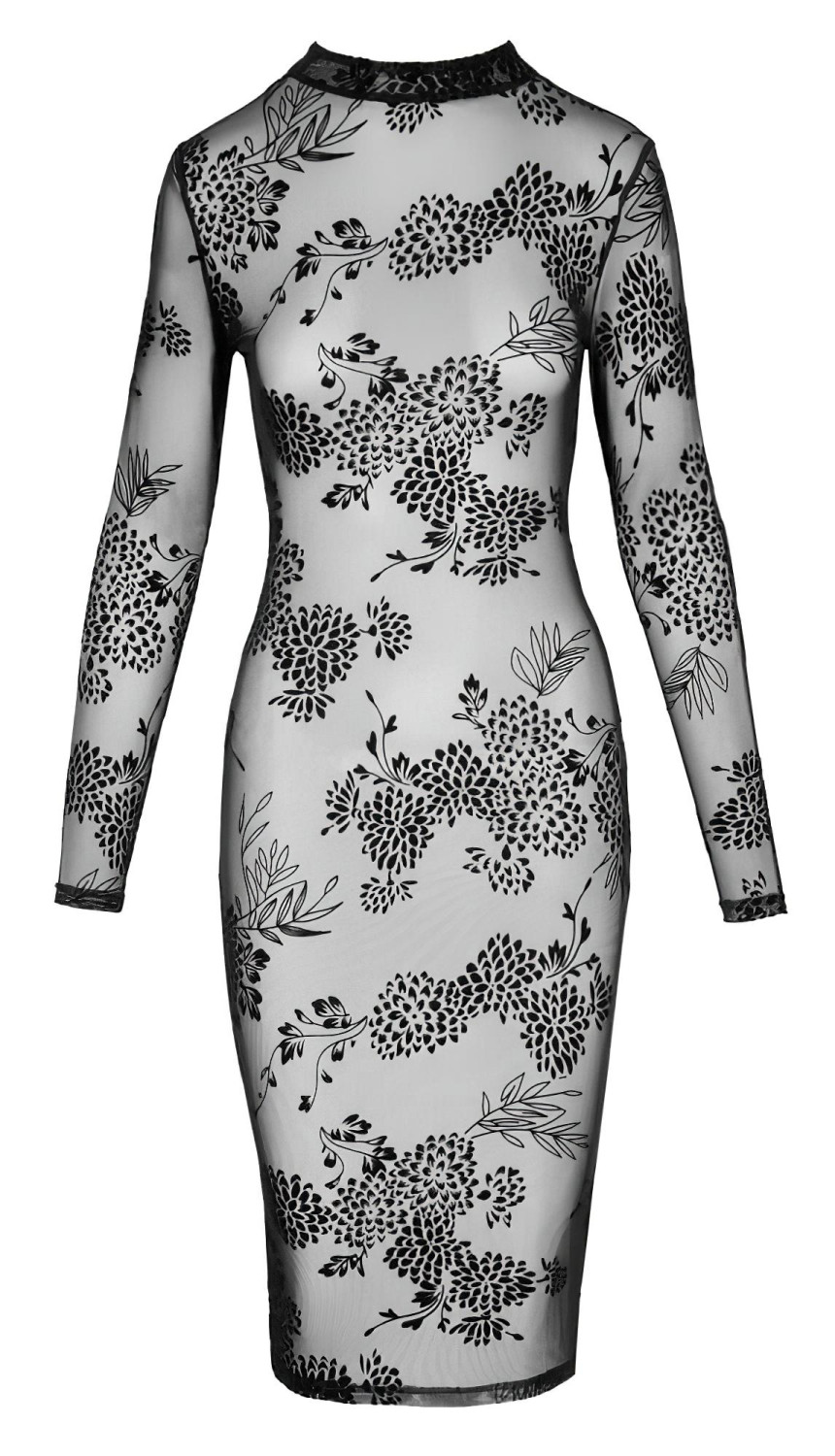 Noir - rochie neagră, transparentă, florală cu mâneci lungi