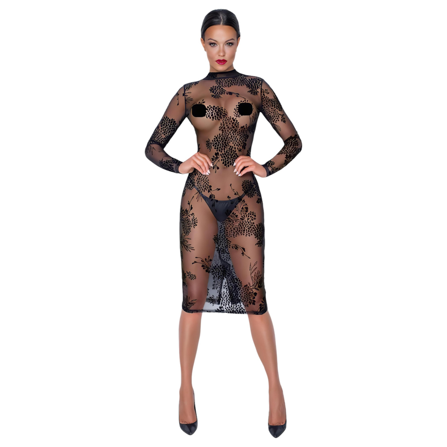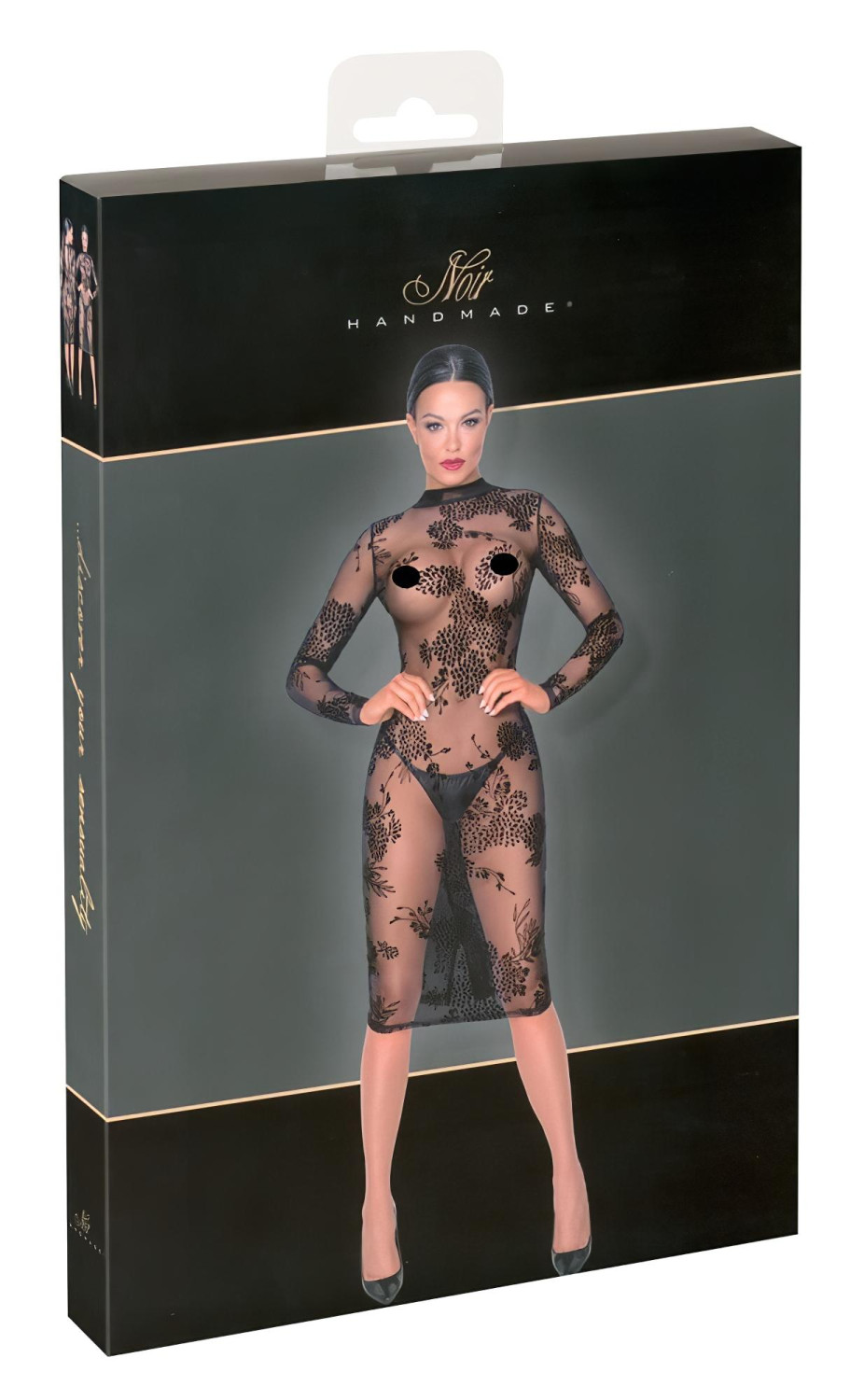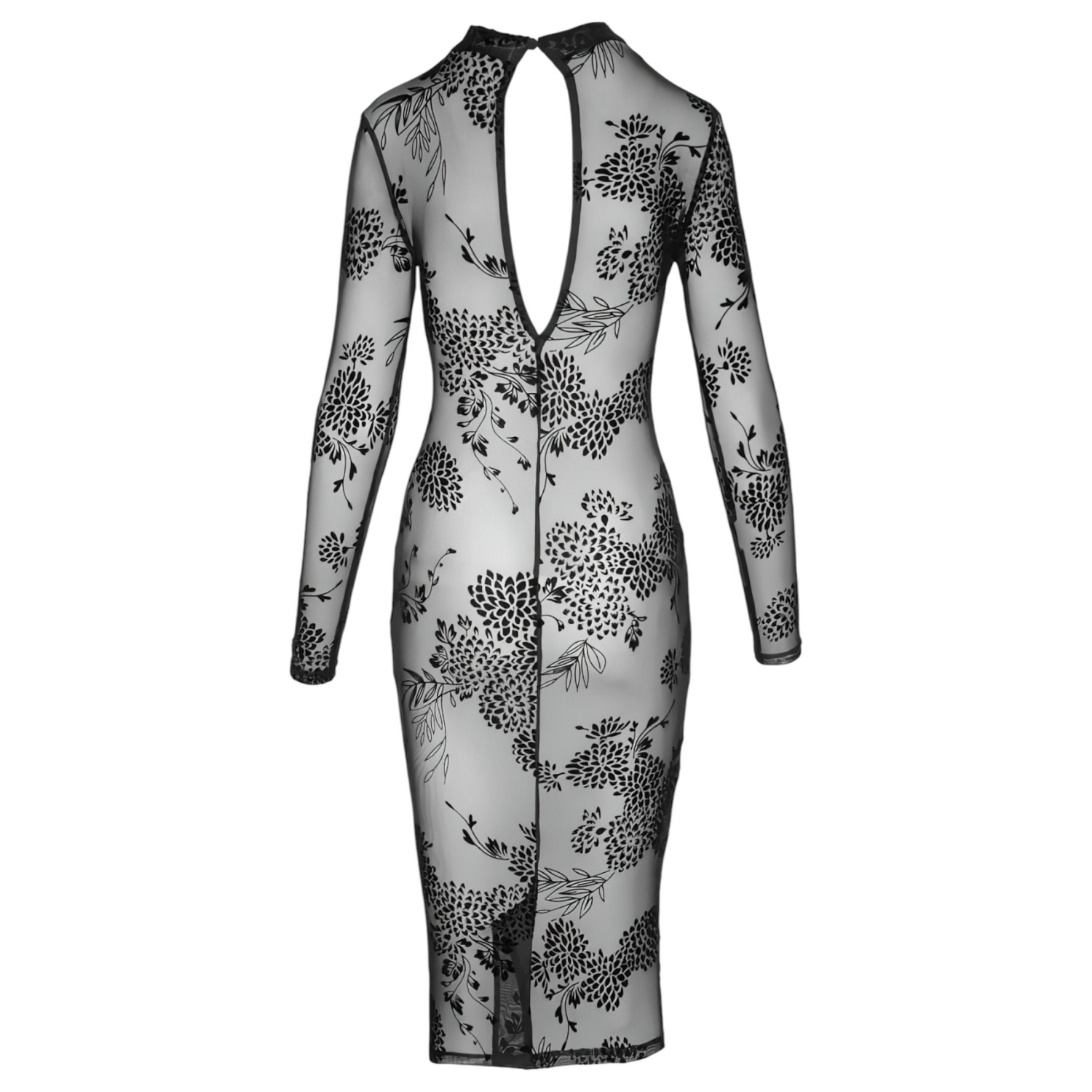 Noir - rochie neagră, transparentă, florală cu mâneci lungi - M