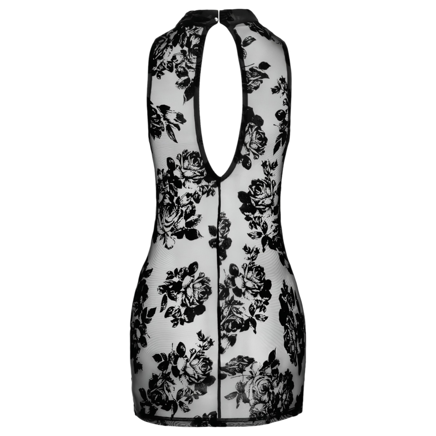 Noir - rochie mini fără mâneci cu motive de trandafiri (negru)