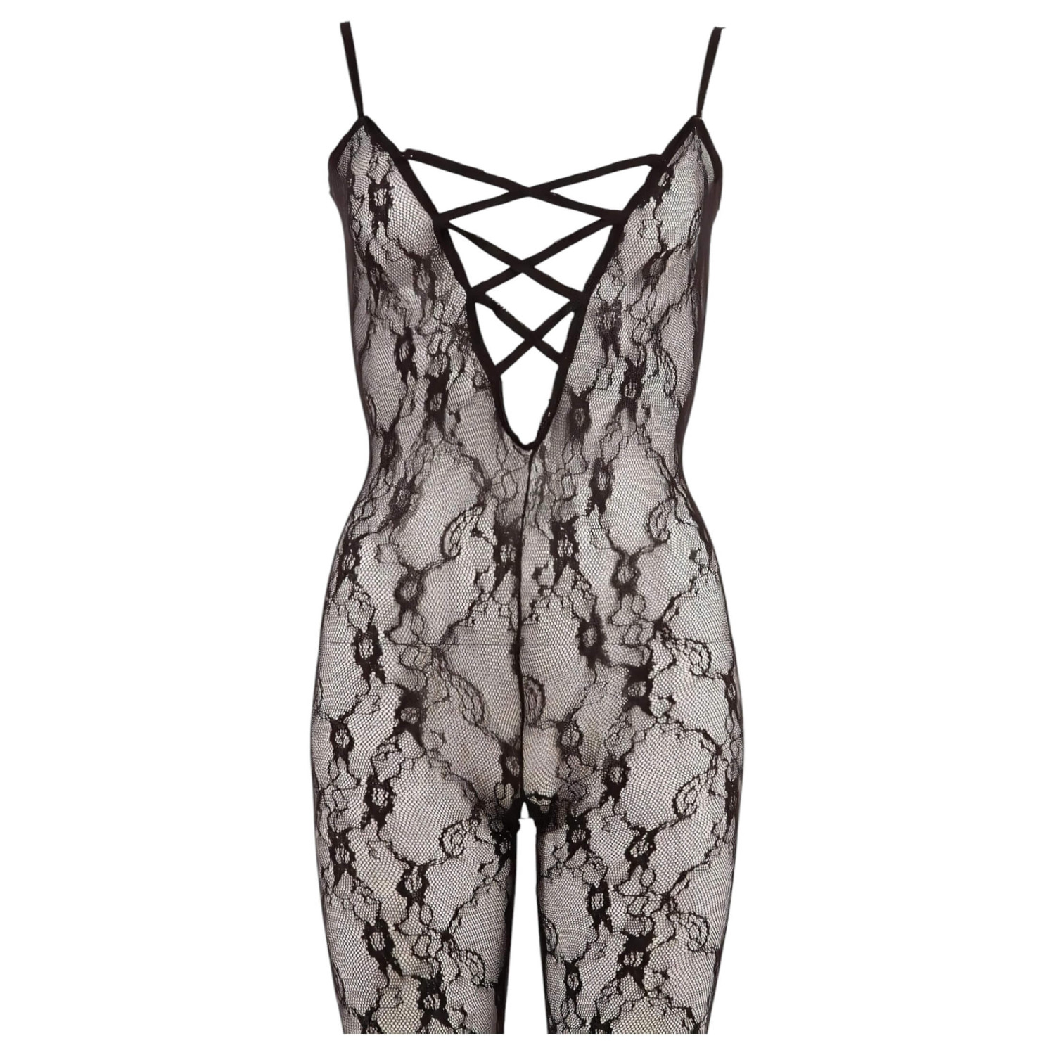 Acest catsuit sexy este realizat din dantelă cu efect fin, care subliniază feminitatea și amplifică atracția.