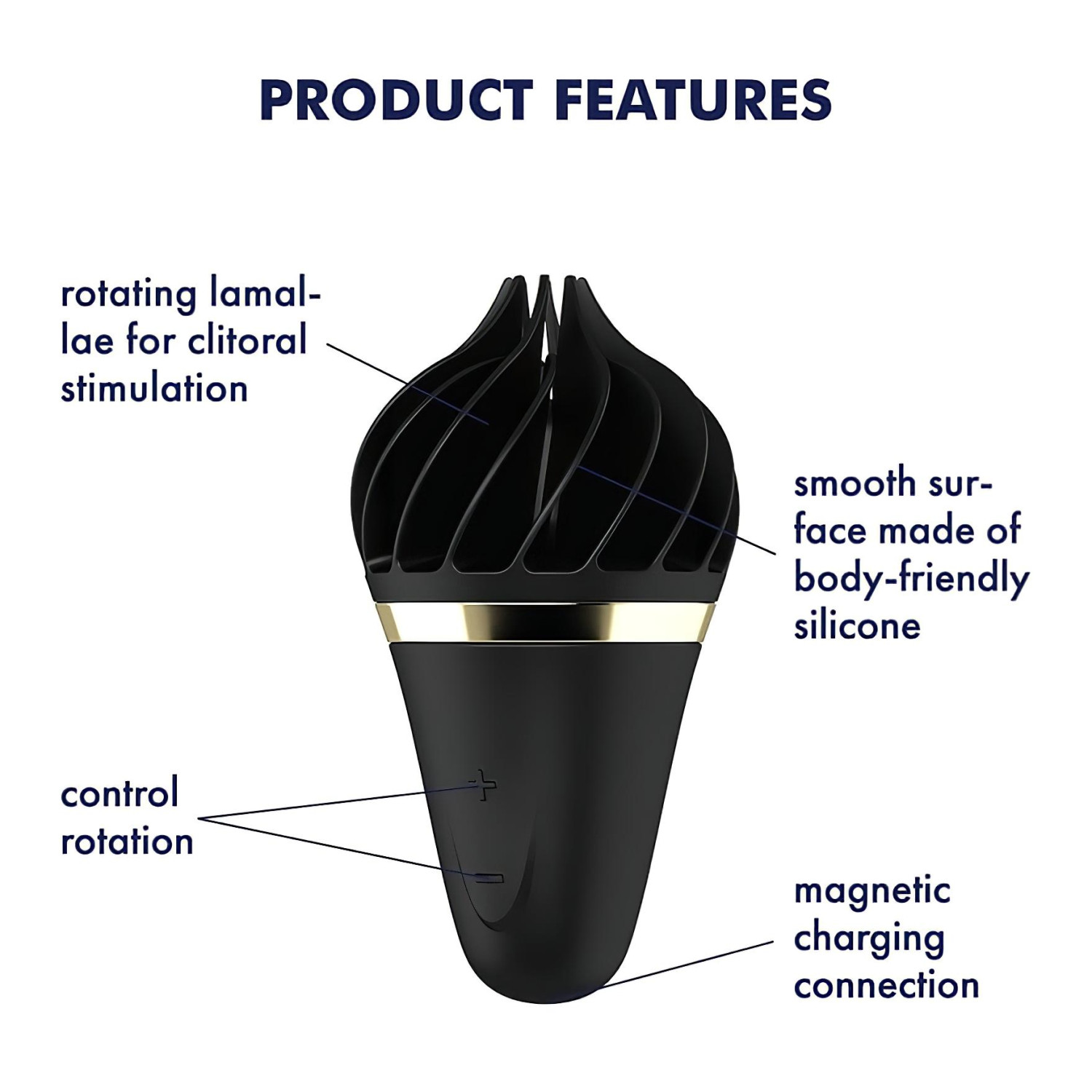 Cum îl controlezi:Pornești sau oprești rotirea apăsând lung butonul plus. Schimbi modurile de vibrație apăsând scurt butonul plus, iar cu butonul minus revii la modul anterior.Sfaturi de utilizare: