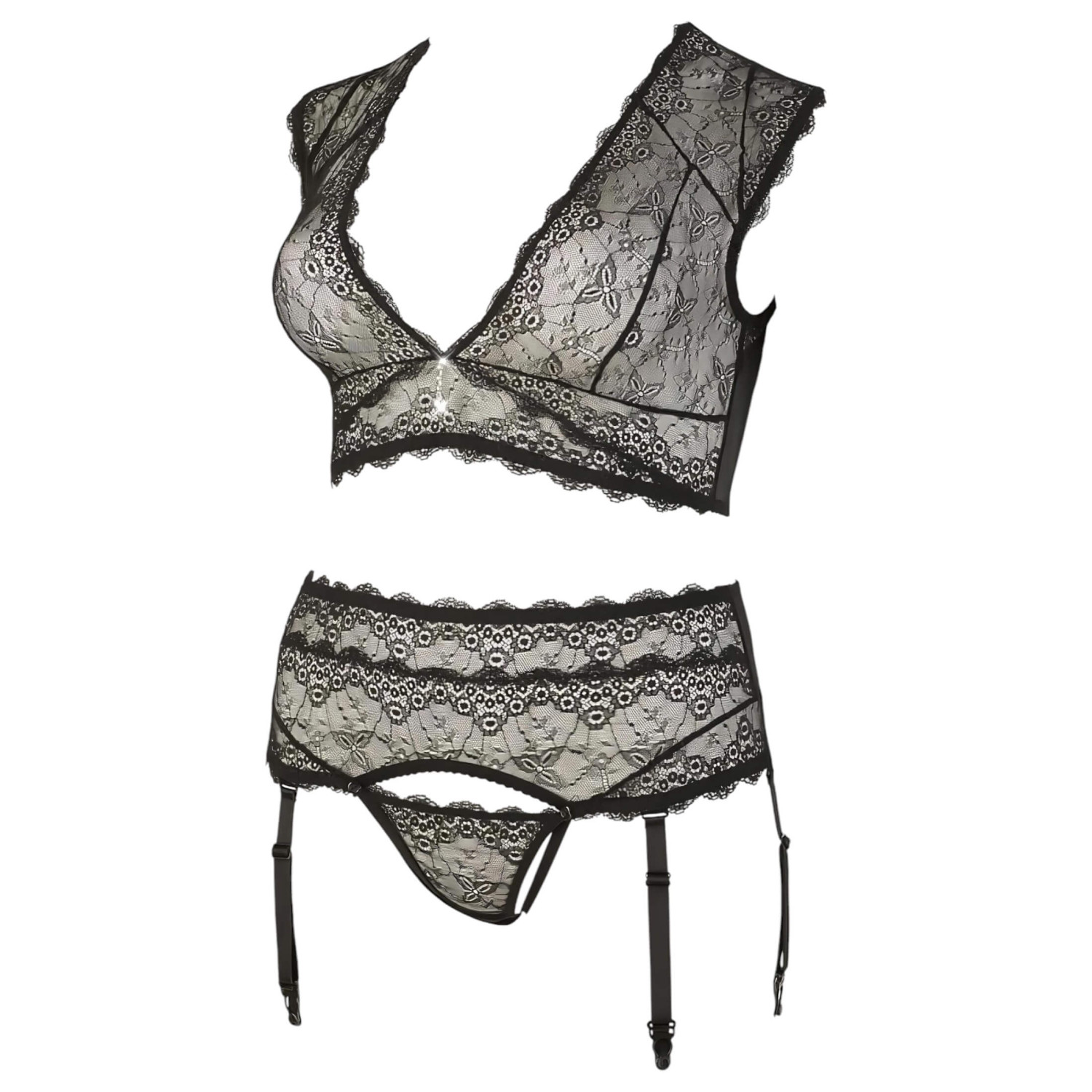 Top moale din dantelă și chilot cu portjartier reglabil din dantelă - combinația perfectă dintre confort și senzualitate!