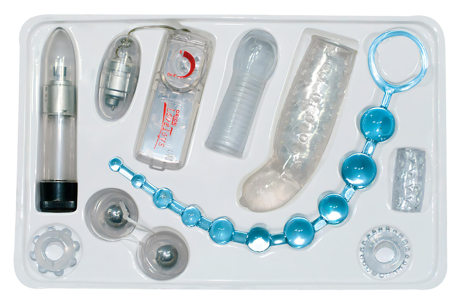 Plăcere cristalină într-un singur set - un kit complet cu 9 piese dintr-un material transparent, care conține tot ce ai nevoie pentru explorări senzuale.