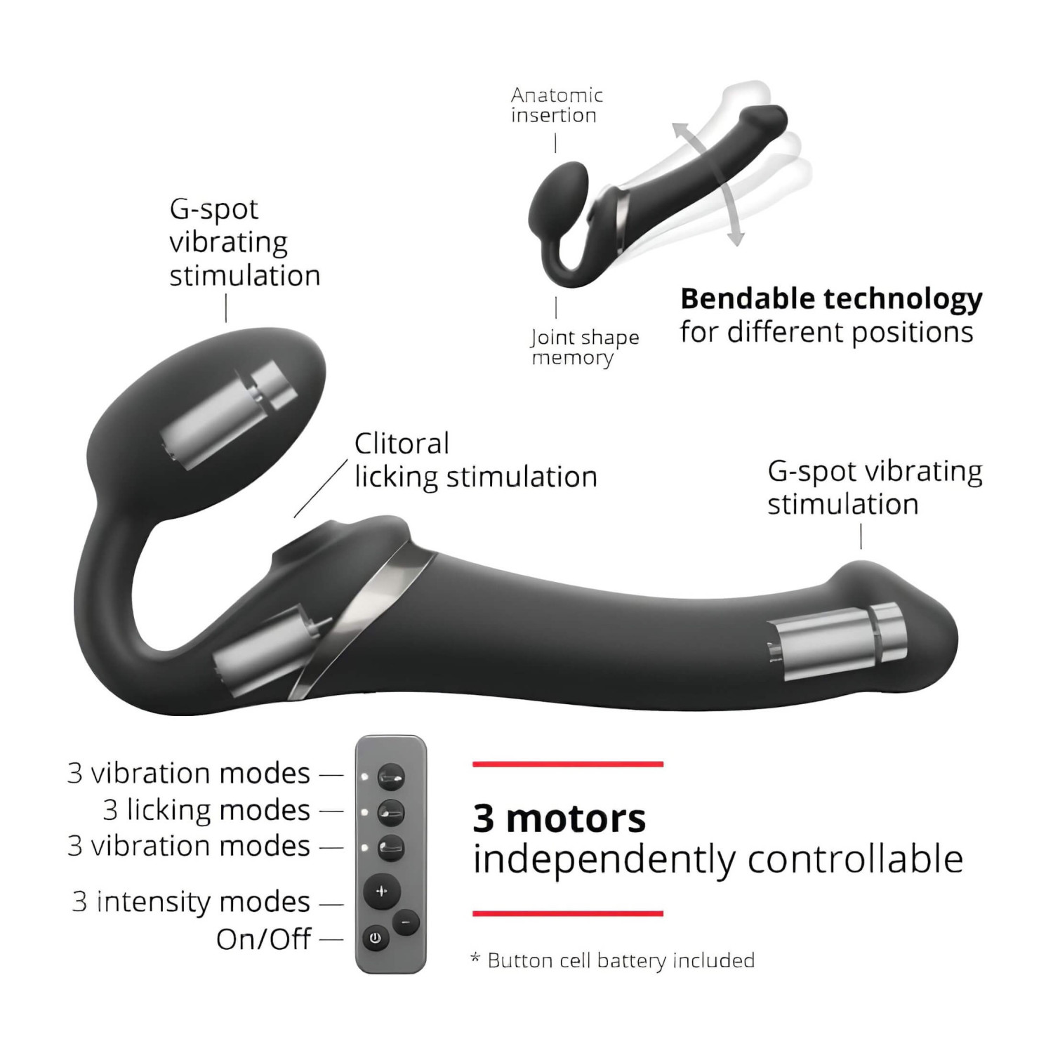 Acest vibrator premium, fără curele, cu trei motoare și stimulare clitoridiană cu unde de aer, duce plăcerea la un nou nivel - pentru amândoi!