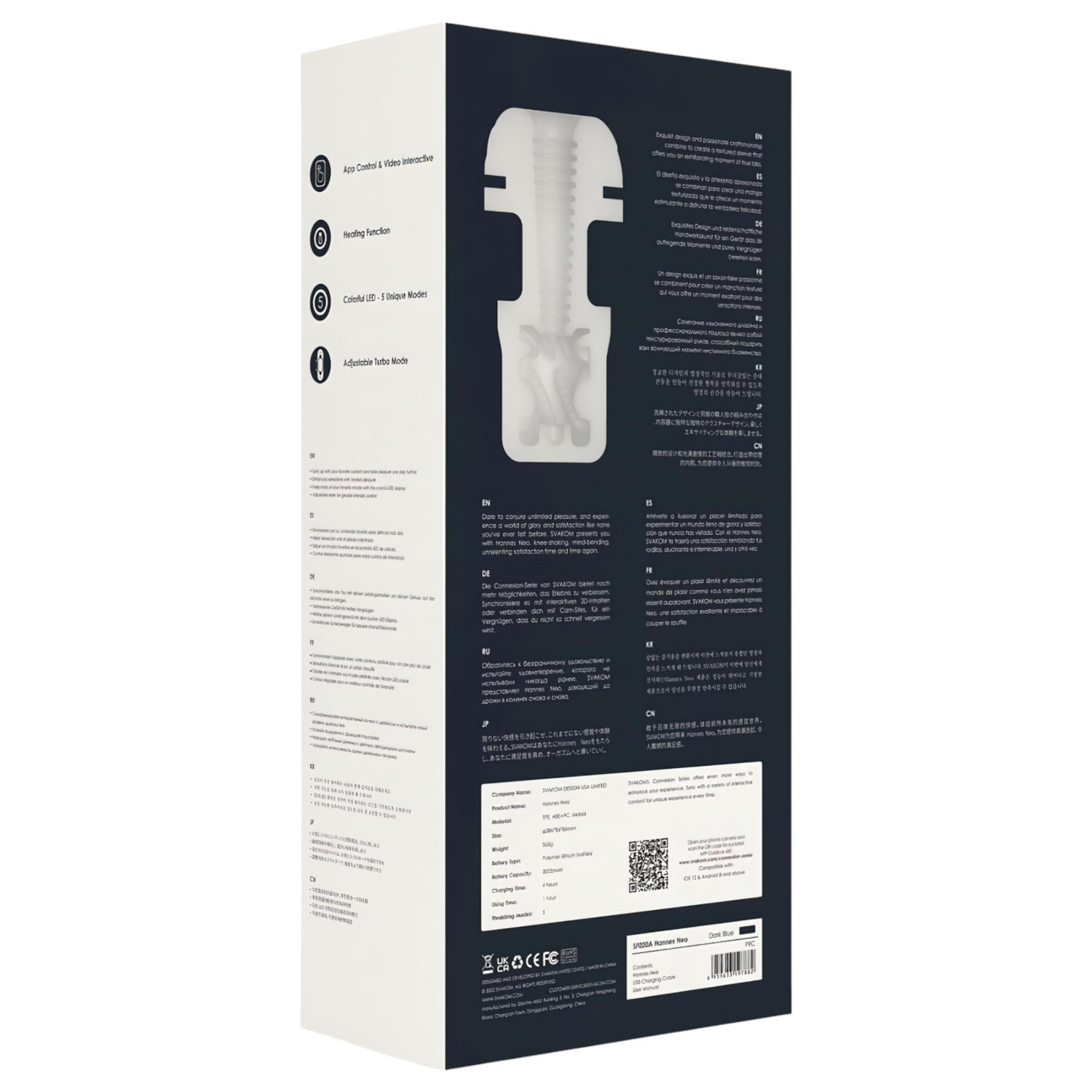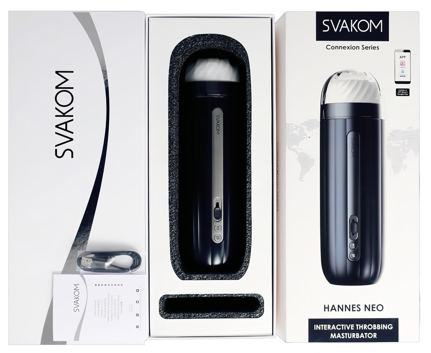 Vezi video-ul de prezentare pentru Svakom Hannes Neo - masturbator cu încălzire și mișcare verticală (albastru)!
