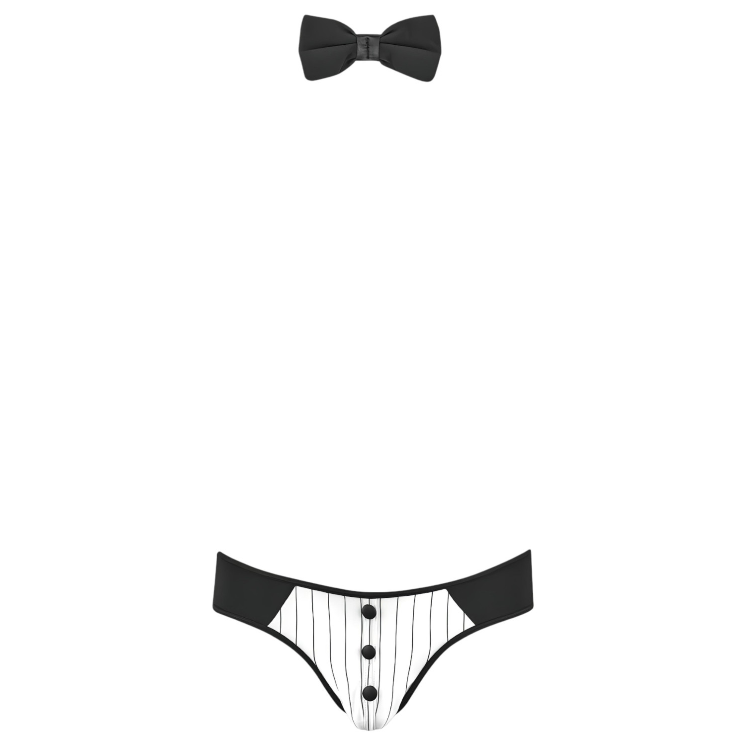 Svenjoyment - set costum tanga de chelner pentru bărbați (negru-alb) - M