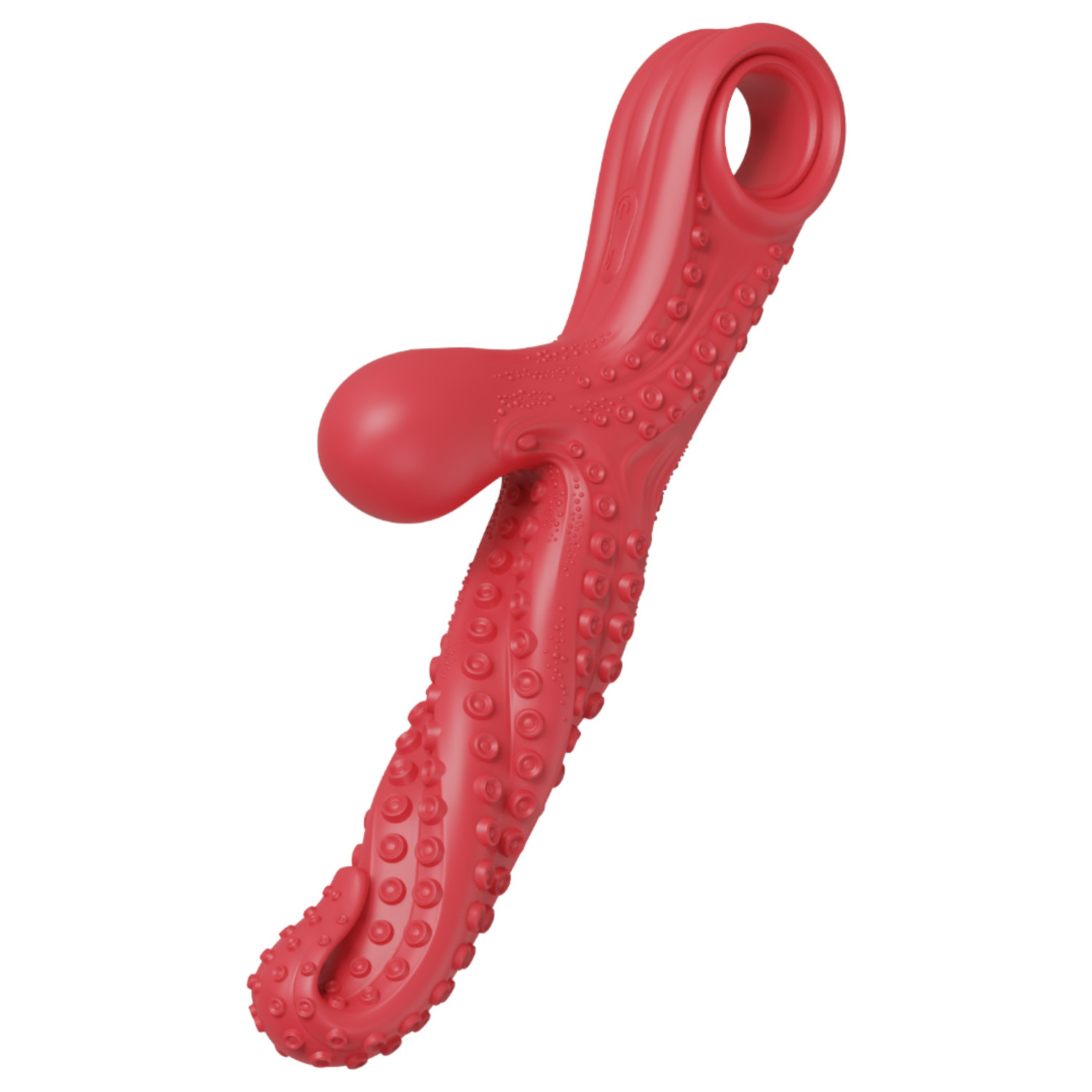 Vibratoarele cu braț pentru clitoris (roșu) cu un design special stimulează simultan punctul G și clitorisul, oferind astfel o dublă plăcere la fiecare utilizare.