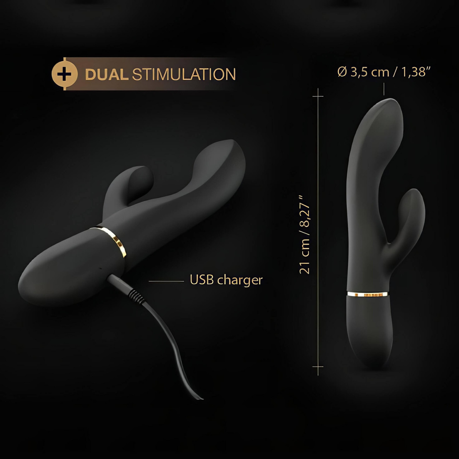 Un vibrator elegant cu design modern, dotat cu două motoare puternice și braț pentru stimularea clitorisului, care îți răsfață în același timp atât clitorisul, cât și punctul G!
