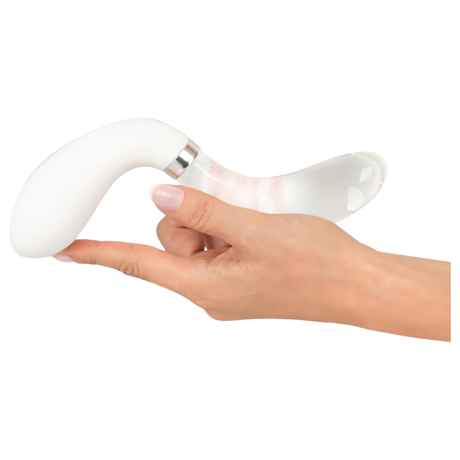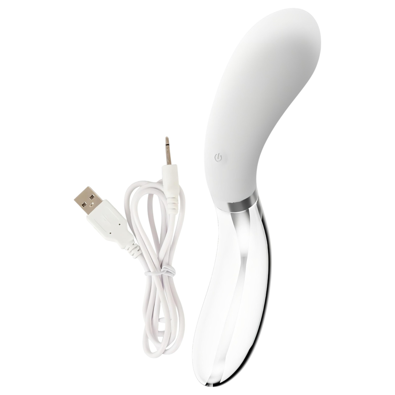 Vibrator reîncărcabil cu LED Liaison Curve (transparent-alb)