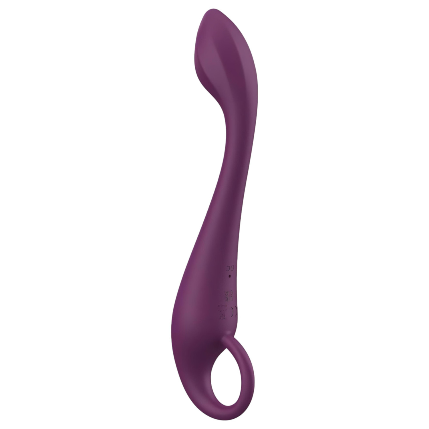 • Formă specială cu gât super-subțire și cap texturat pentru stimularea punctului G - are și inel de prindere pentru folosire comodă