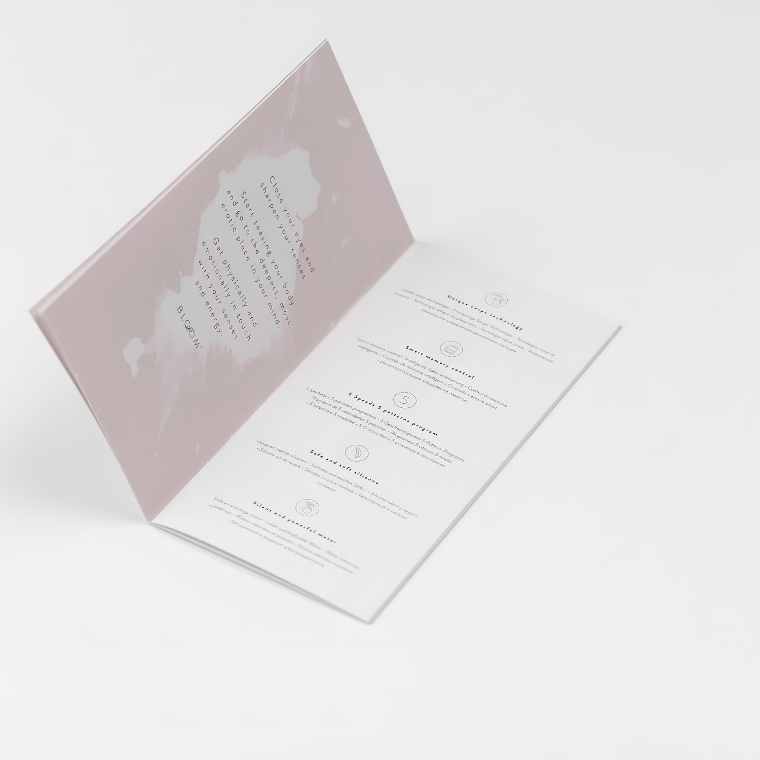Cum se folosește?După aplicarea lubrifiantului, introdu vibratorul în vagin cu capătul orientat spre tine și în sus.Începe cu mișcări scurte și jucăușe, înainte și înapoi, apoi poți pătrunde complet.După aceea, schimbă modurile și intensitatea vibrațiilor exact cum simți.Control:Ai la dispoziție 5 moduri vibrante diferite, fiecare cu 5 niveluri de intensitate.Pe vibrator găsești un buton cu simbol de val (dar nu doar de acolo poți controla, vezi mai jos), apăsat lung pornește/oprește vibrațiile, iar cu o apăsare scurtă selectezi modul dorit dintre cele 5.*Crește intensitatea vibrațiilor doar prin atingere!Deasupra butonului de control, pe ramura formată din frunzulițe mici, poți glisa cu degetul pentru a crește sau scădea intensitatea vibrațiilor selectate.