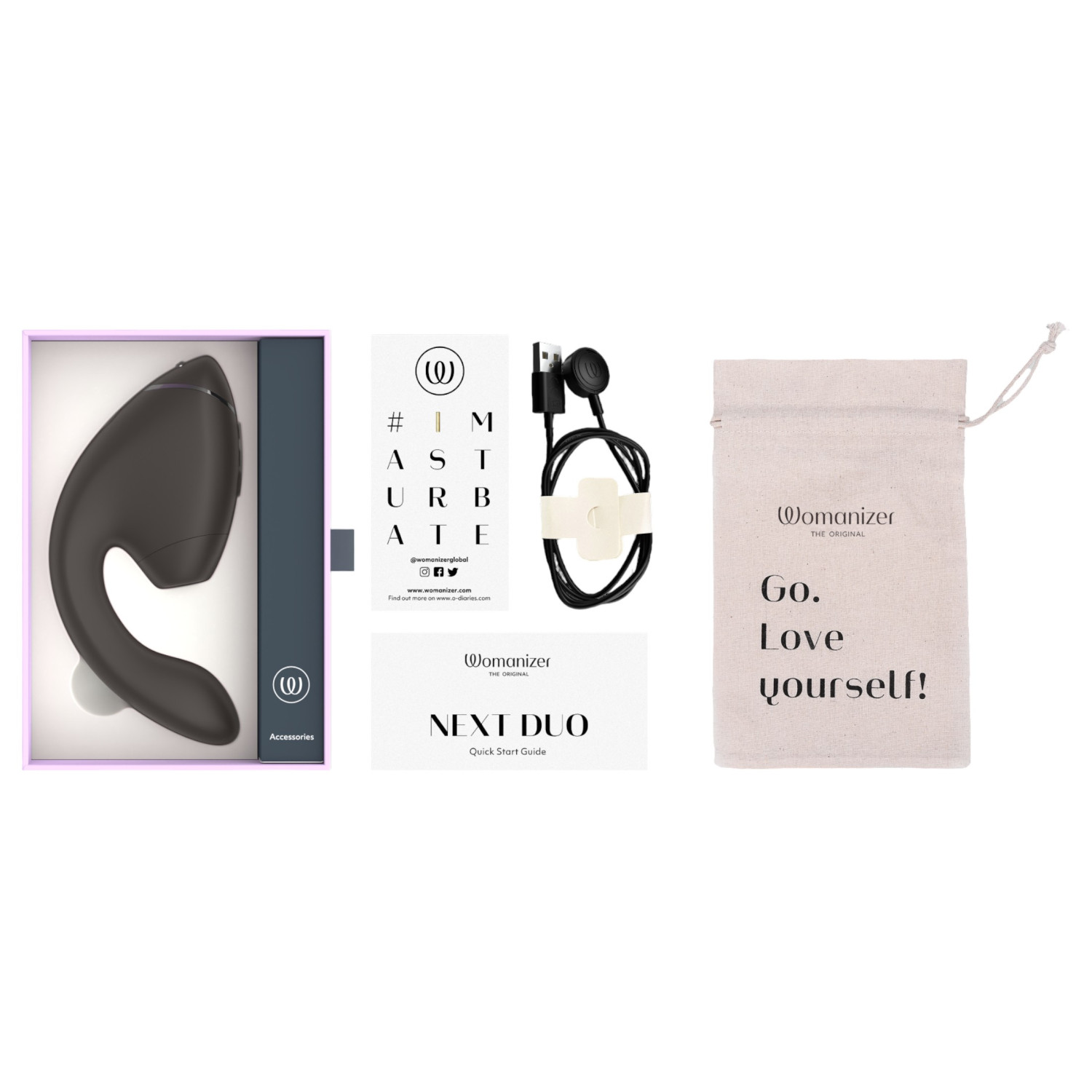 Womanizer Next Duo 2 în 1 stimulent G-spot combină cea mai modernă tehnologie 3D Pleasure Air cu vibrații adânci și puternice pentru G-spot, oferind o experiență de neuitat.