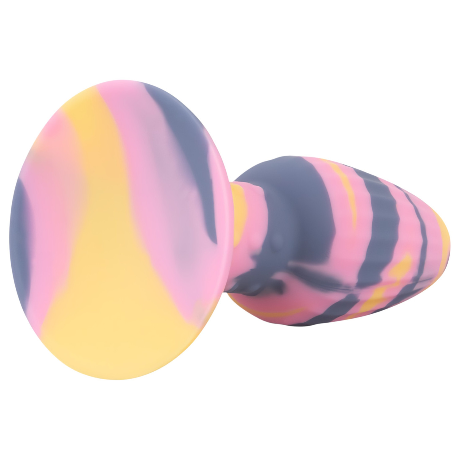 Dildo anal din silicon în culori tricolore magice, creat pentru iubitorii plăcerii prin spate.De ce e fain?