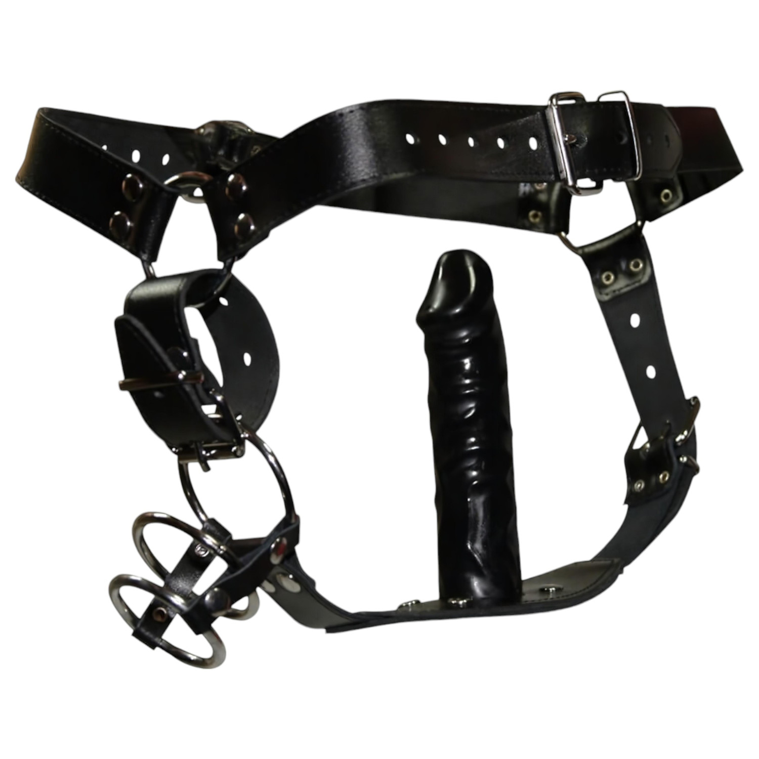 Descoperă masculinitatea și dominația cu acest slip tanga pentru bărbați, confecționat din piele premium, cu inele din metal și dildo anal încorporat - pentru o experiență incitantă la superlativ!